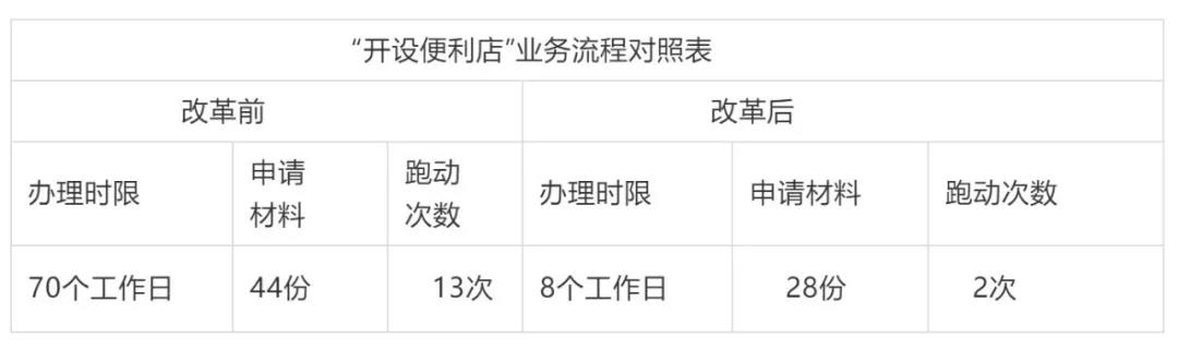比如,办理300多家门店营业执照延期只需要2天,开一家便利店在一些区只要8个工作日,建设项目“排水接入”只需9天......