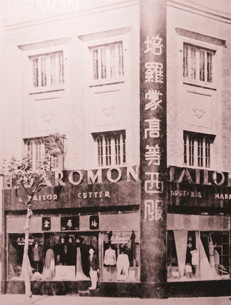 “培罗蒙”三字为行楷大字,挺拔饱满,遒劲有力,牌匾表面镀铬,高高悬挂,非常惹人注目。上海是旧中国最为“洋化”的城市,培罗蒙店名中有一个“罗”字,有人据此猜测是不是与罗宋人(旧时上海对俄国人的称谓,RUSSIAN的音译)有关。所以,这个洋化的店名对培罗蒙的生意是有着推波助澜作用的。