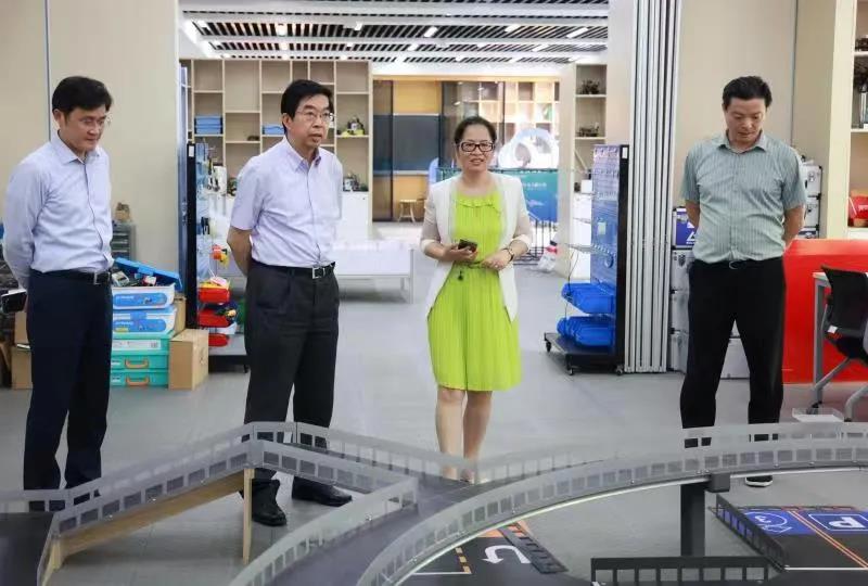 黄震一行参观了嘉定一中教师楼、嘉懿创新思维广场等学校教育教学场所。嘉定区教育局局长祝郁主持召开嘉定一中教育评价专题座谈会。座谈会上,上海市嘉定一中党总支书记、校长管文洁作题为“从教走向学,追寻教育的自然之美”的主旨报告。