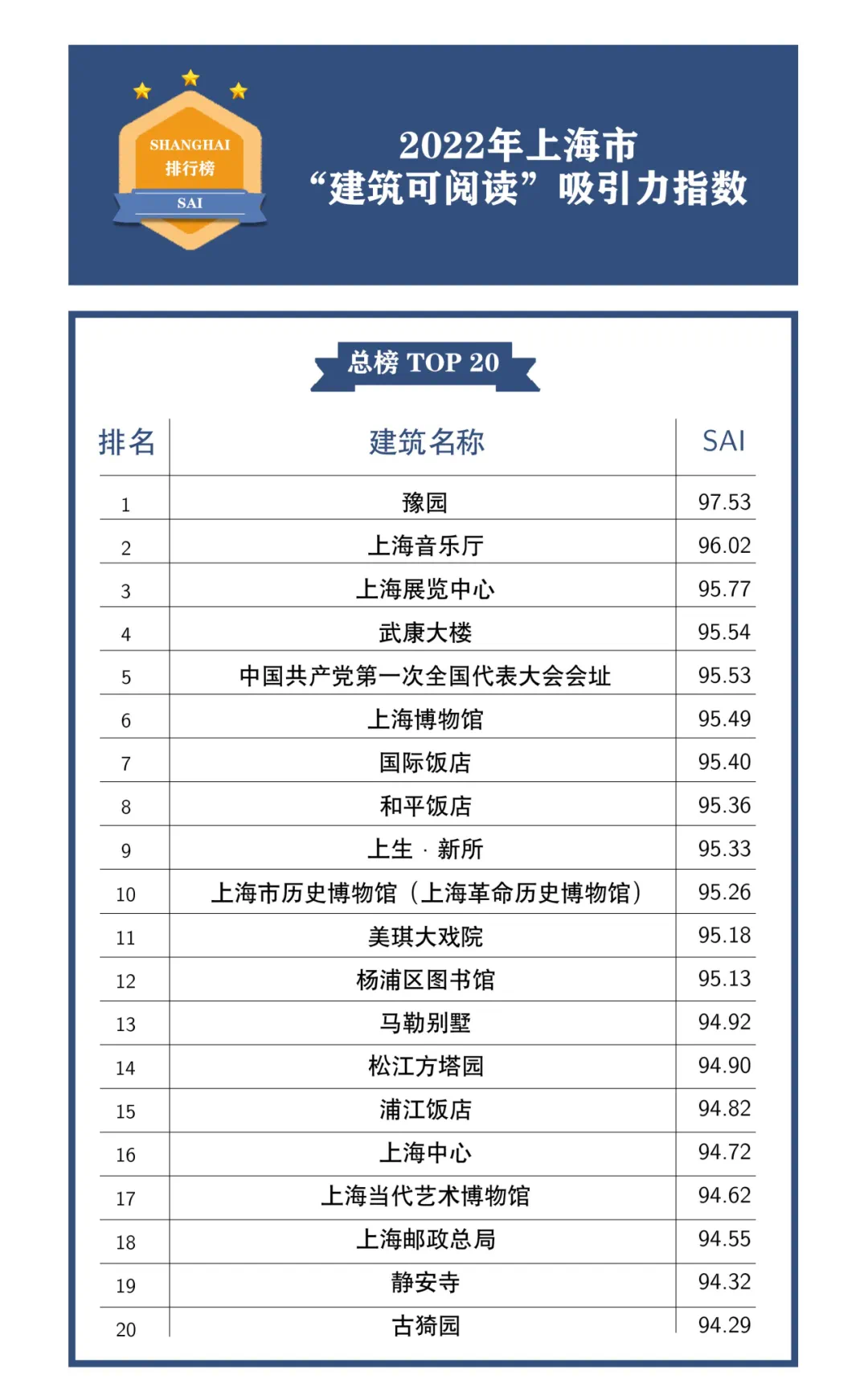 (原题为《上海哪幢建筑最受关注?上海市“建筑可阅读”吸引力指数首次发布》)