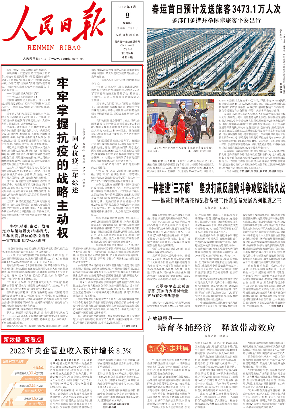 人民日报头版头条:牢牢掌握抗疫的战略主动权——同心抗疫三年综述
