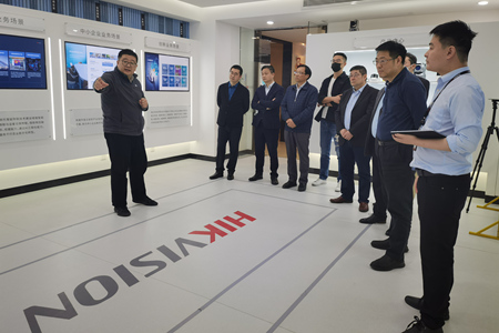 会前,大家共同参观了海康威视上海分公司展厅,徐习明详细介绍了海康威视成立以来在安防、智能物联领域耕耘二十余年的发展历程、取得的成就等,并对当前最新的研发情况进行了展示交流。