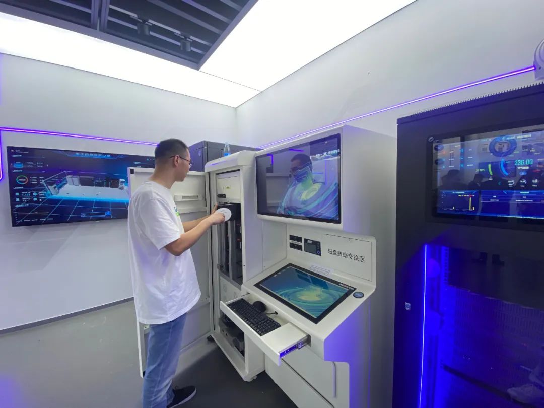 在电子档案长期安全保存展区,通过现场构建的电子档案库房场景,观众可直观了解电子档案库房的日常管理与运转模式。电子库房内陈列了磁盘、光盘、磁带、胶片等电子档案物理载体和相关存储、读取设备,并提出了适应不同类型档案部门的备份、迁移、处置措施,确保档案数字资源长期、安全、有效管理。