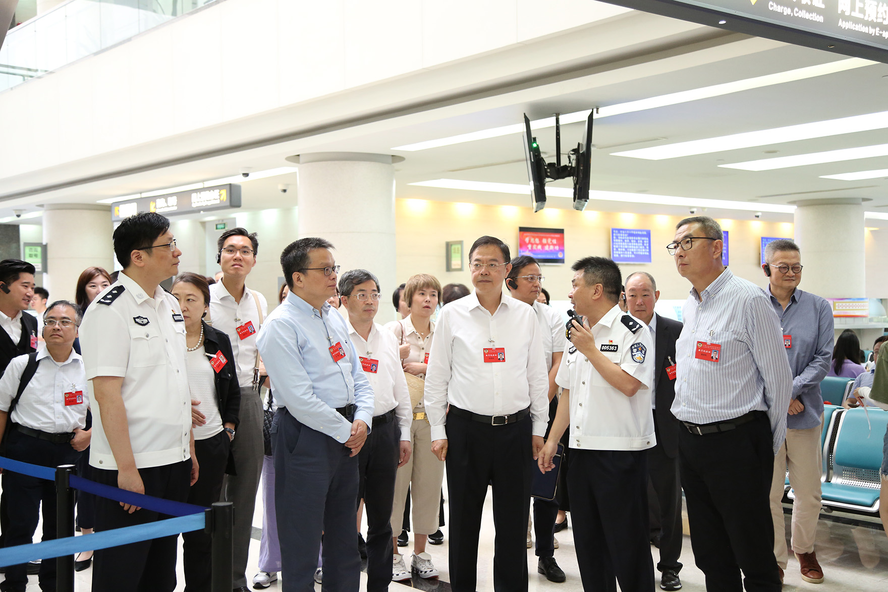 会前,委员们实地考察了市公安局出入境管理局办证大厅、局史馆和国家移民管理局12367上海服务平台。张恩迪副主席与来到大厅办理证件的群众亲切交谈,关切询问他们的事情办理进展情况,大家对证件办理的效率给出了一致好评。张恩迪说,出入境管理工作虽然只是这次视察主题的一个重要方面,但通过这次视察活动,可以感受到市公安局、市公安局出入境管理局的领导和相关部门,能够始终秉承人民至上的理念,带着感情、带着责任想办法、解难题、抓落实,值得充分肯定。
