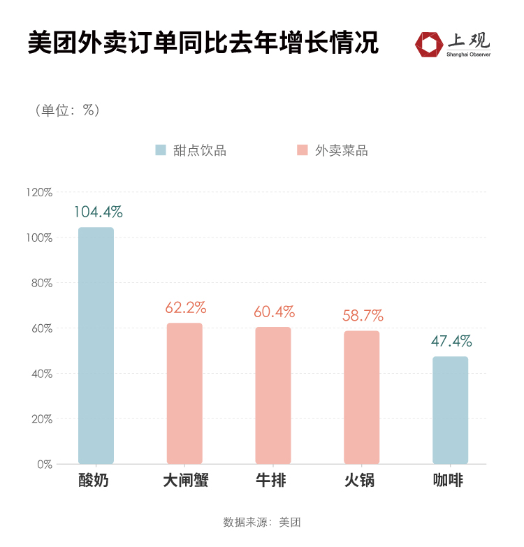 从美团平台的数据来看,大闸蟹、牛排、火锅是游客最爱的外卖菜品。