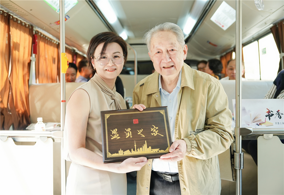 “民盟市委第一个移动的‘盟员之家’在车上成立了!”入盟40年的上海话剧艺术中心国家一级演员许承先,在掌声中为“盟员之家”揭牌。移动的车厢不仅成了学习盟史的课堂,也成了交流的会客厅。年近耄耋的原《新民晚报》主任记者李葵南在车上分享了她担任全国人大代表期间的履职经验,民盟市委青委会副主任杨之涛也汇报了学习心得……金色的阳光洒在车厢里,窗外流动的风景让大家进一步体会到“建筑可阅读,盟史可感知”。