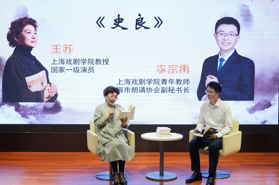 上海戏剧学院教授、国家一级演员王苏与上海戏剧学院青年教师、上海市朗诵协会副秘书长李宗禹,合作诵读《史良》一书的精彩章节。王苏教授在繁忙的工作间歇,通读了《史良》整本书,并亲自编辑策划、打磨内容,在北京演出期间也不忘反复练习。他们选取了史良先生在不同历史时期的语录和书信,通过绘声绘色、声情并茂的诵读,展现了这位传奇女性波澜壮阔的一生,让大家为之动容。
