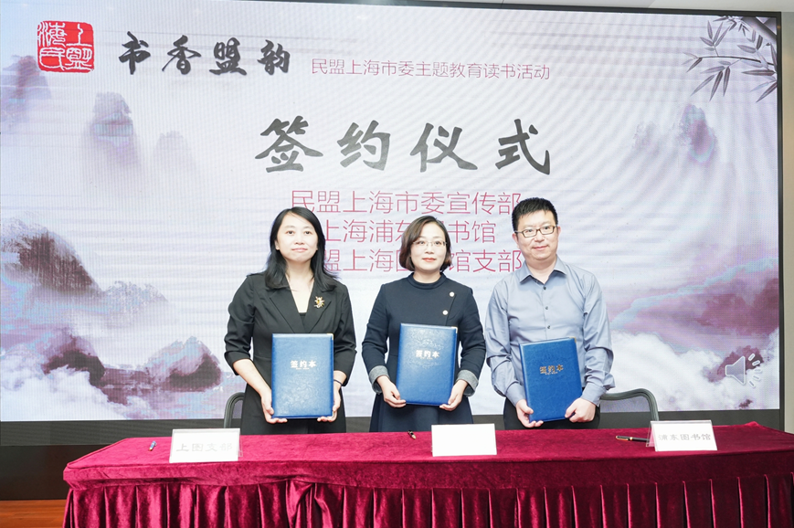 活动现场,民盟上海市委宣传部、上海浦东图书馆与民盟上海图书馆(上海科学技术情报研究所)支部代表签订共建协议。三方今后将发挥优势、加强合作,开展特色活动,打造“书香盟韵”品牌,共同助力建设书香社会。