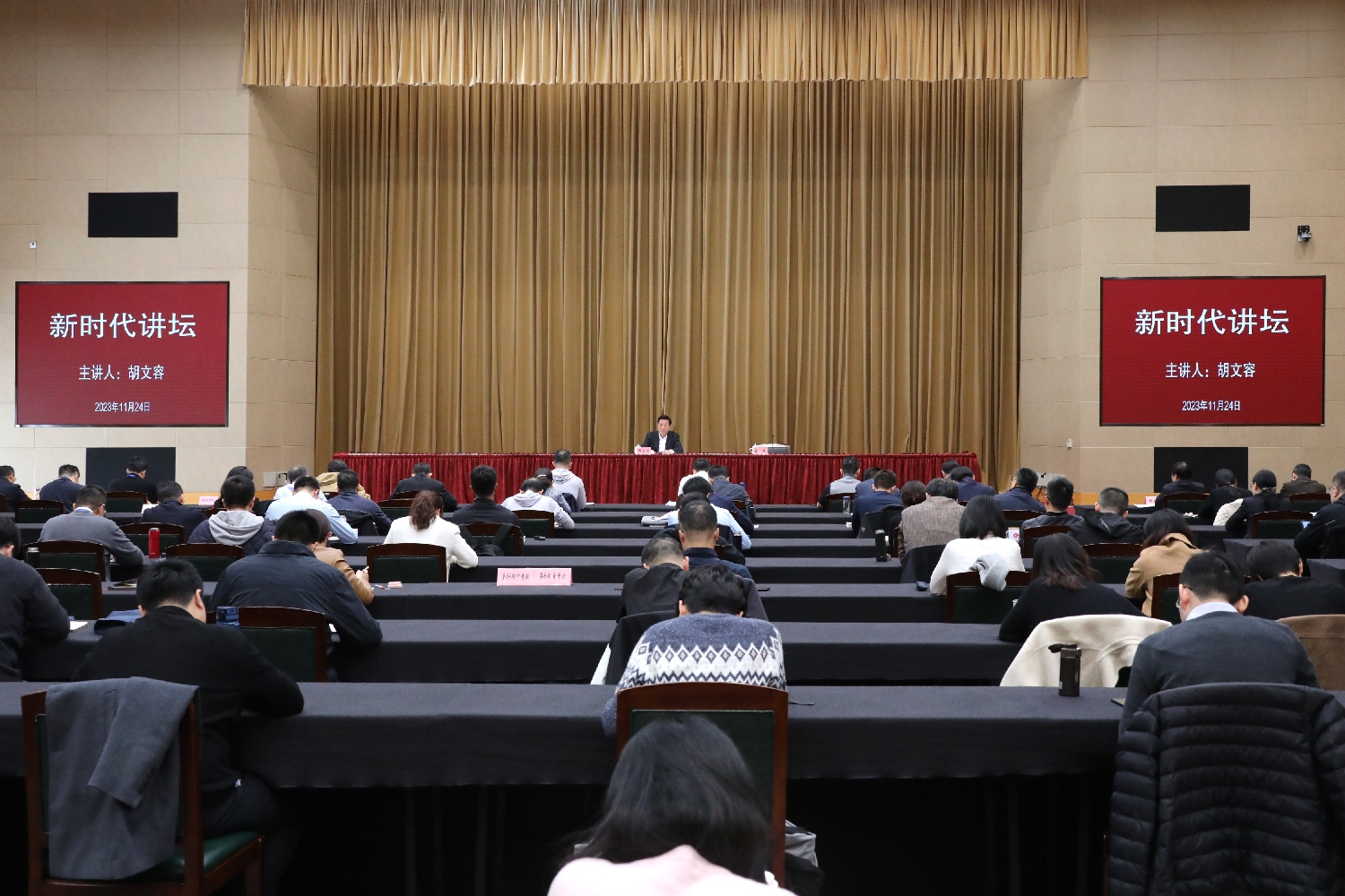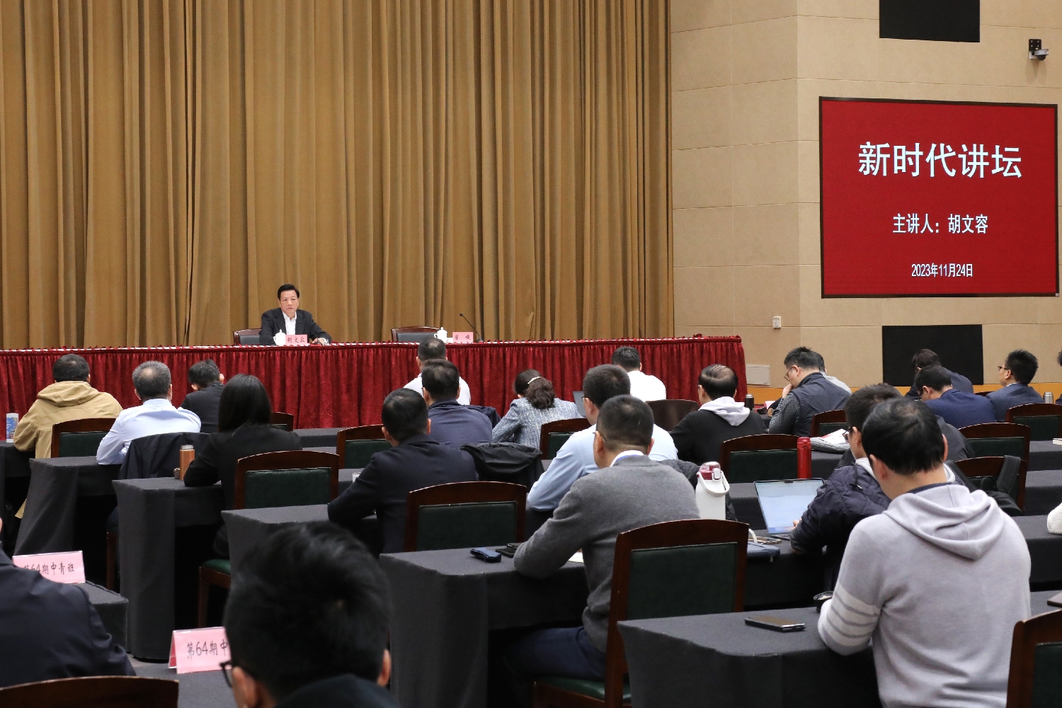 11月24日,人民政协理论“三进”专题报告会在市委党校召开。市政协主席胡文容为市委党校学员作“坚持好人民政协制度 发展好人民政协事业”专题报告。
