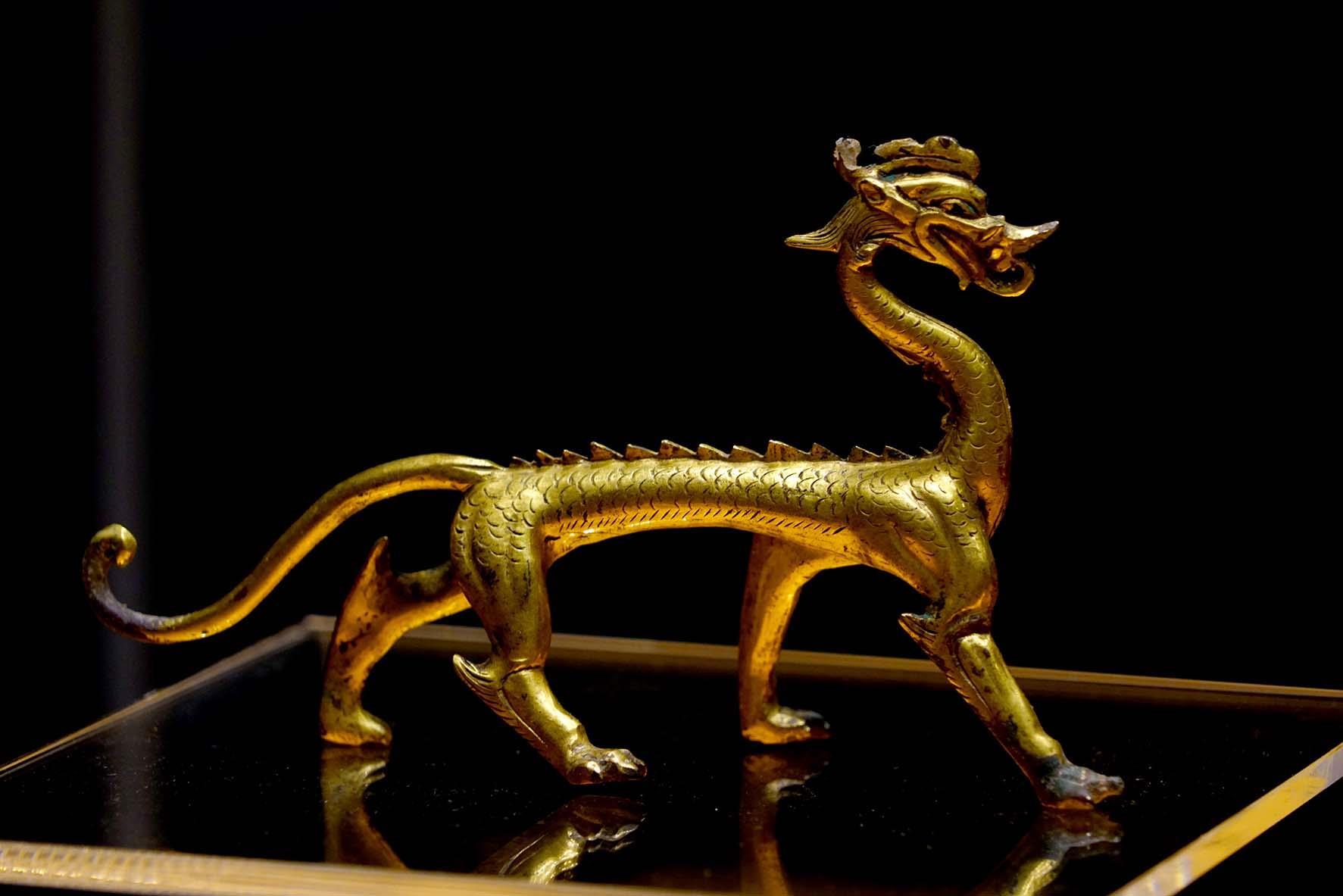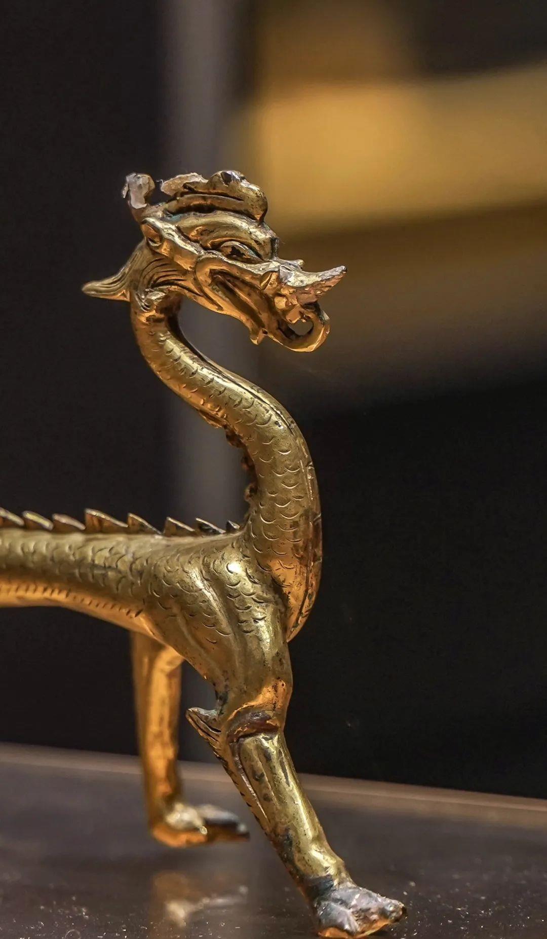 这条鎏金走龙属于唐代的工艺品和明清时候的游龙、飞龙有很大区别