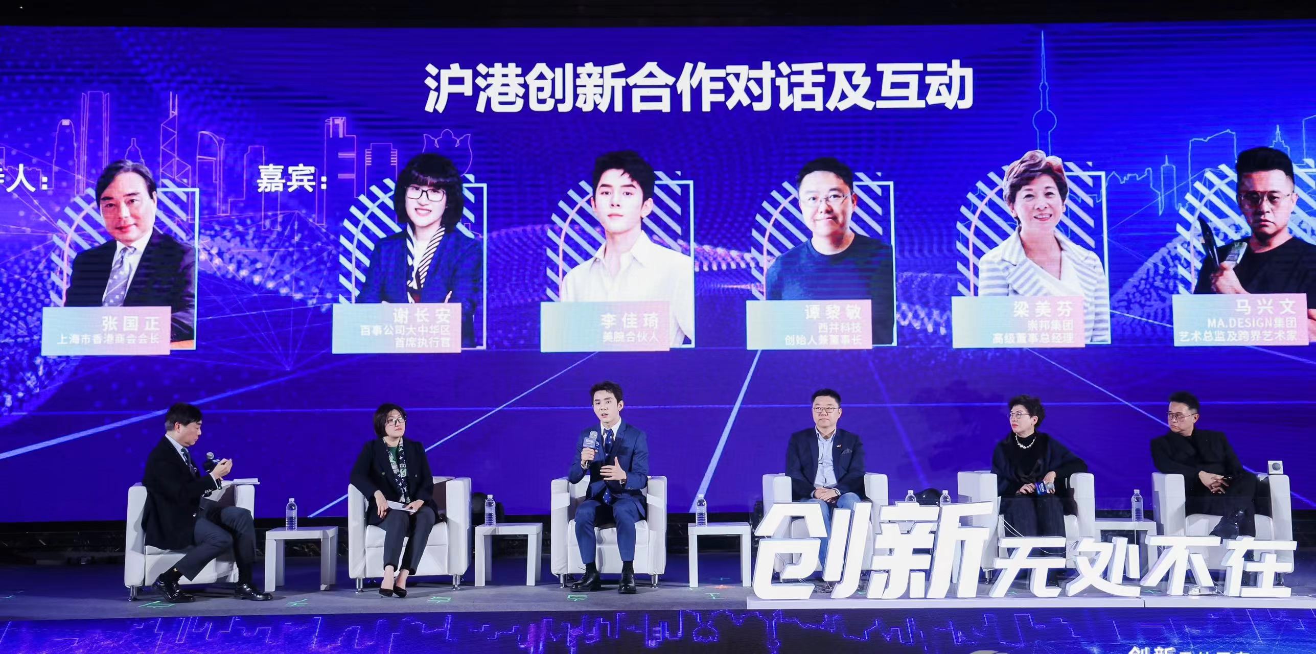 在创新合作对话及互动分享环节,百事大中华区CEO谢长安,李佳琦,西井科技创始人、董事长谭黎敏,崇邦集团董事总经理梁美芬和MA.DESIGN集团CEO兼艺术总监马兴文等上海与香港消费品、直播电商、人工智能等不同领域的创新实践代表,分享了各自创新故事及行业创新发展路径。上海市香港商会会长张国正主持。