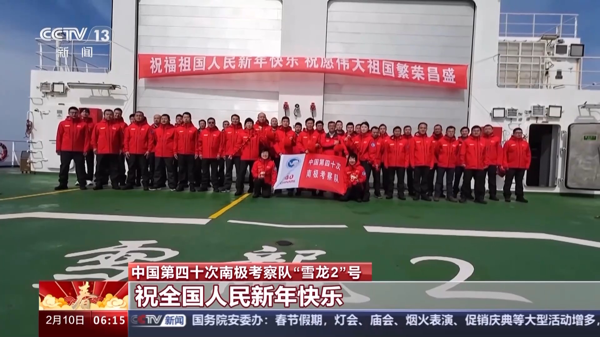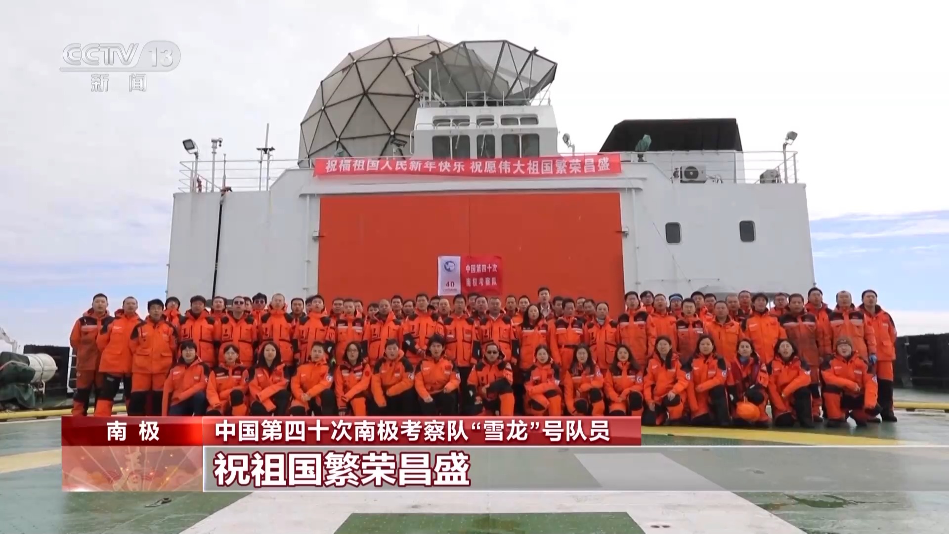 中国第四十次南极考察队长城站队员:我们在南极长城站给全国人民拜年了,祝全国人民新春快乐,龙年大吉,祝伟大祖国繁荣昌盛。