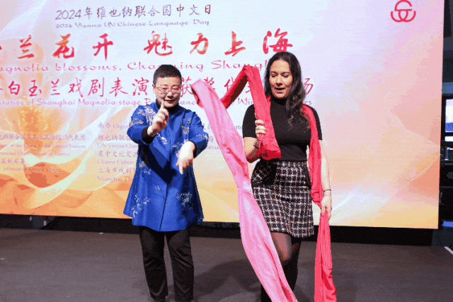 当地时间5月8日,应“2024维也纳联合国中文日”活动主办方中国常驻维也纳联合国及其他国际组织代表团、维也纳联合国新闻署的共同邀请,由维也纳联合国中文会、奥中文化交流协会、上海市戏剧家协会联合承办,上海市人民政府新闻办公室支持的“玉兰花开·魅力上海——上海白玉兰戏剧表演奖获奖代表专场演出”,在维也纳联合国总部所在地维也纳国际中心中文日活动的舞台上精彩亮相,中国常驻联合国维也纳办事处和其他国际组织代表李松大使和夫人王晓琳参赞,上海市文联专职副主席、上海剧协主席谷好好,维也纳联合国中文会会长王海军,奥中文化交流协会会长常恺等出席活动,维也纳各国际组织和各国常驻团官员及当地华人华侨观看演出。