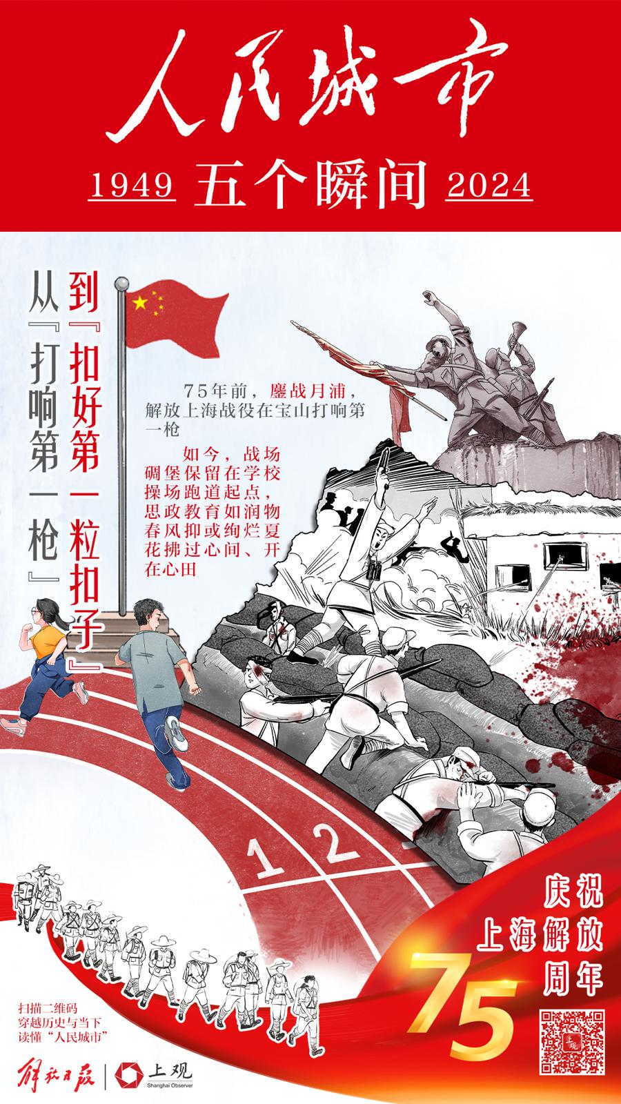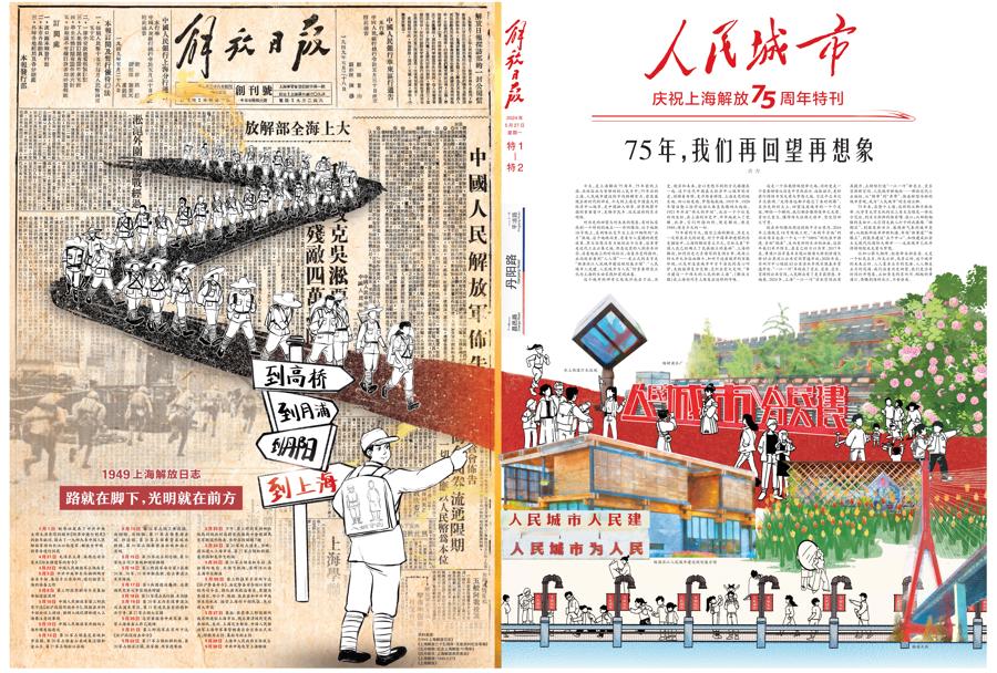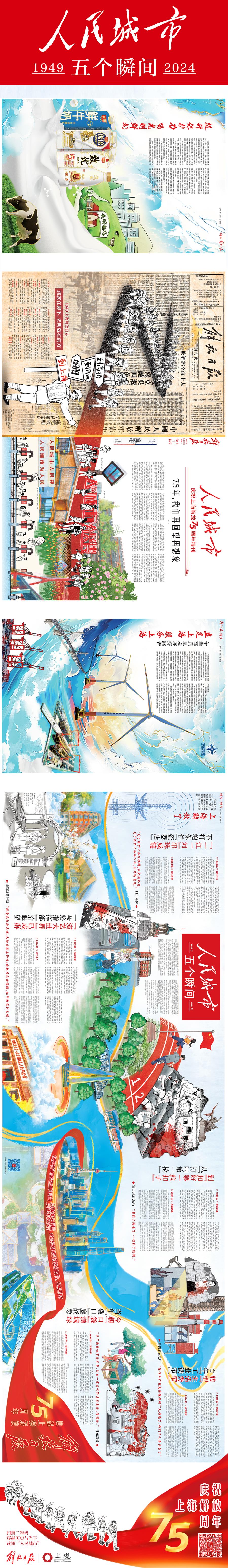 75年前的今天,上海解放。解放日报今日推出四连版手绘长卷,聚焦人民城市的五个瞬间。
