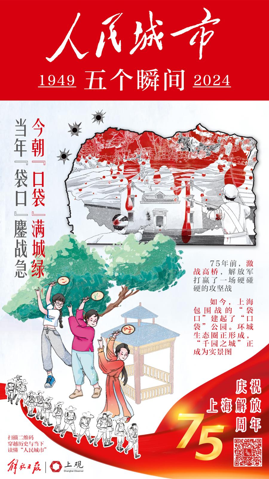 75年前,激战高桥,解放军在这里打赢了一场硬碰硬的攻坚战。这个曾是上海包围战的“袋口”,如今建起了一座“口袋”公园。放眼整个上海,一个环城生态圈正在形成,“千园之城”的目标正在成为实景图。