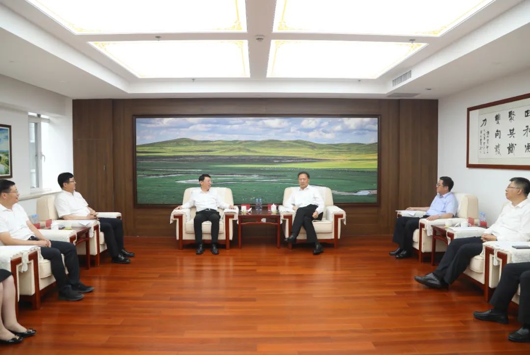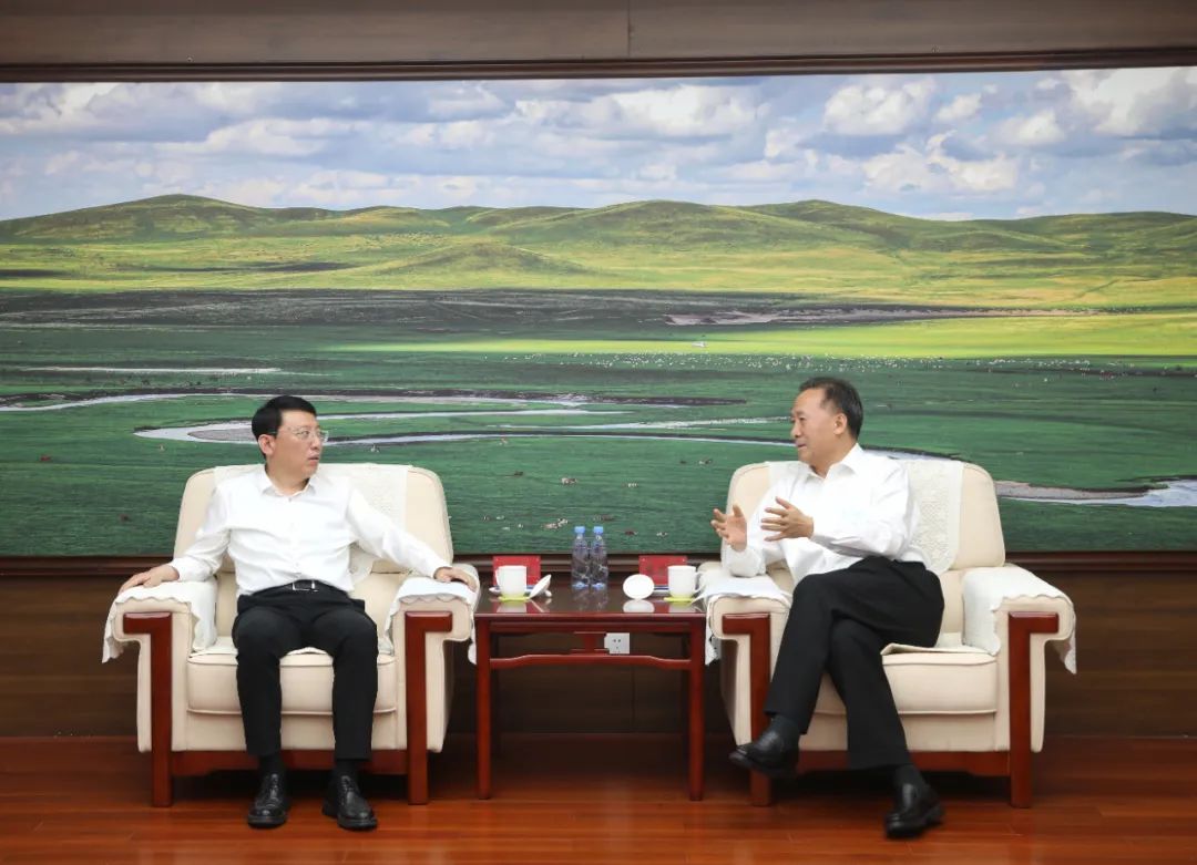 7月11日,内蒙古自治区政协党组书记、主席张延昆在呼和浩特会见北京工业大学党委书记姜泽廷。