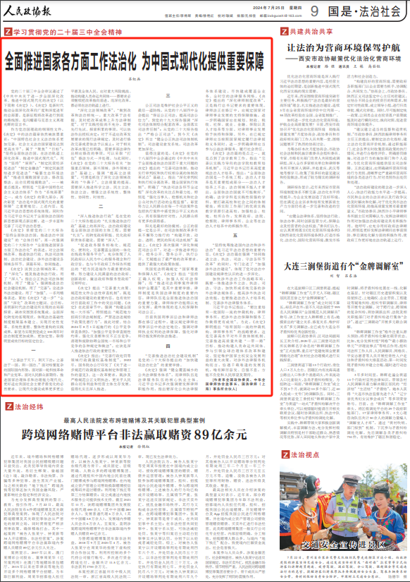 人民政协报关注|在沪全国政协委员吕红兵:全面推进国家各方面工作法治化为中国式现代化提供重要保障
