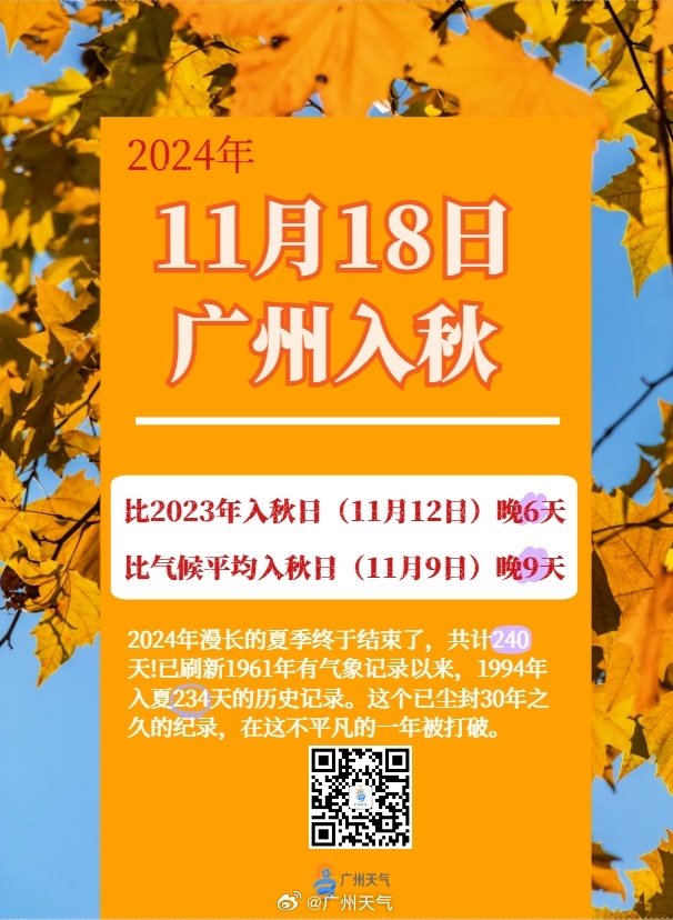 广州于11月18日入秋,今年夏天持续240天破纪录