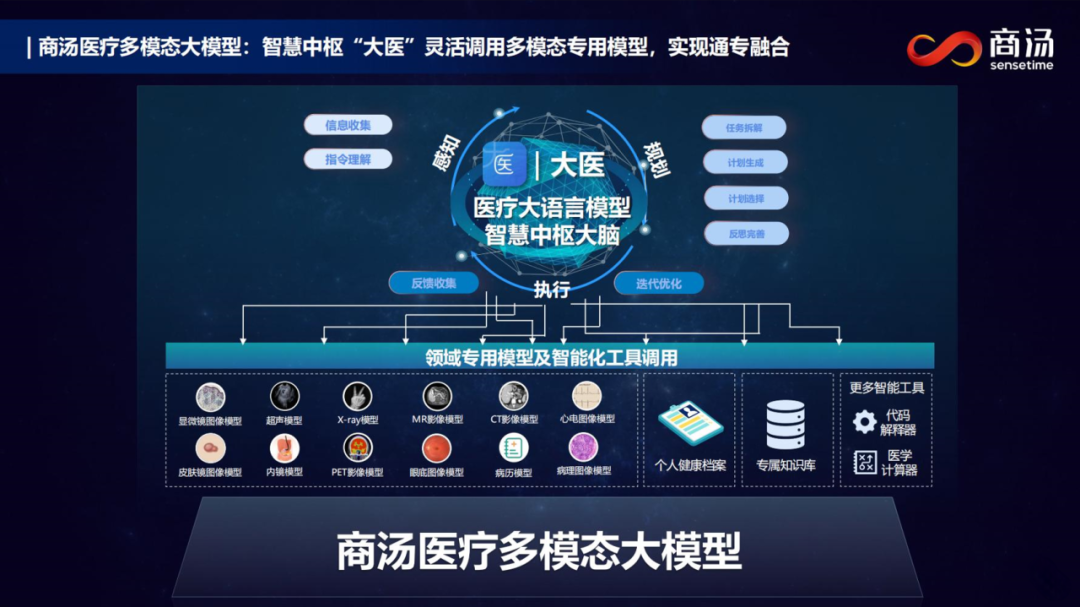 2018年,张少霆正式加入商汤科技,带领团队扎根智慧医疗领域多年,率先打造了首个多模态大模型智能体驱动的智慧医院综合解决方案,让医疗大语言模型“大医”作为智慧医院 “中枢大脑”,智能调度多模态专用模型实现“通专融合”能力,大幅提升合作医院的诊疗、科研、患者服务效率和水平。