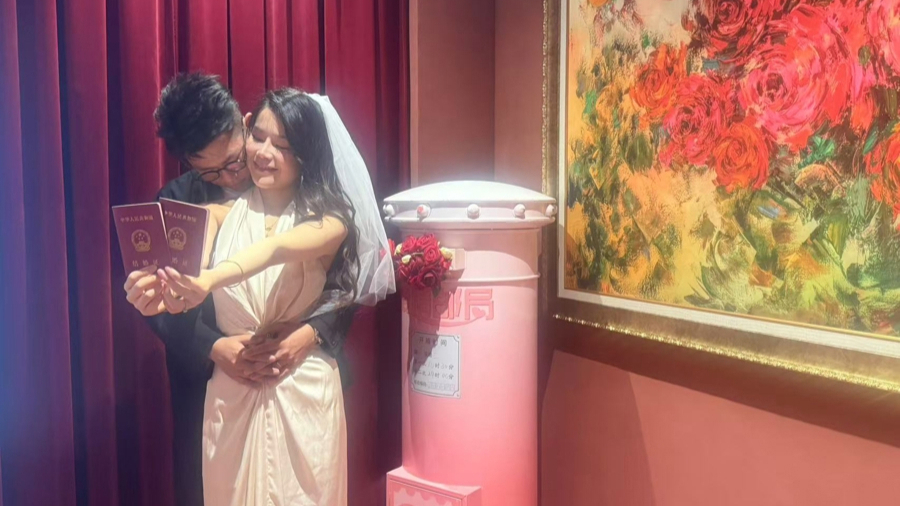 新修订的《婚姻登记条例》从今天(5月10日)起正式实施,上海各婚姻登记机关迎来首批享受“全国通办”新政的当事人。按照新政,即日起,只要有一方是中国公民,无论户籍是否在上海,都可以在上海任意一个区的婚姻登记窗口登记,这意味着婚姻登记这一高频公共服务真正“随人走”,当事人不用再“为爱奔波”。今天的甜爱路“甜度爆表”,上午9时,虹口区婚姻登记中心甜爱路分中心洋溢着幸福的气息,上海首批婚姻登记全国通办新人们正在领证,其中有不少新人是外地户籍。