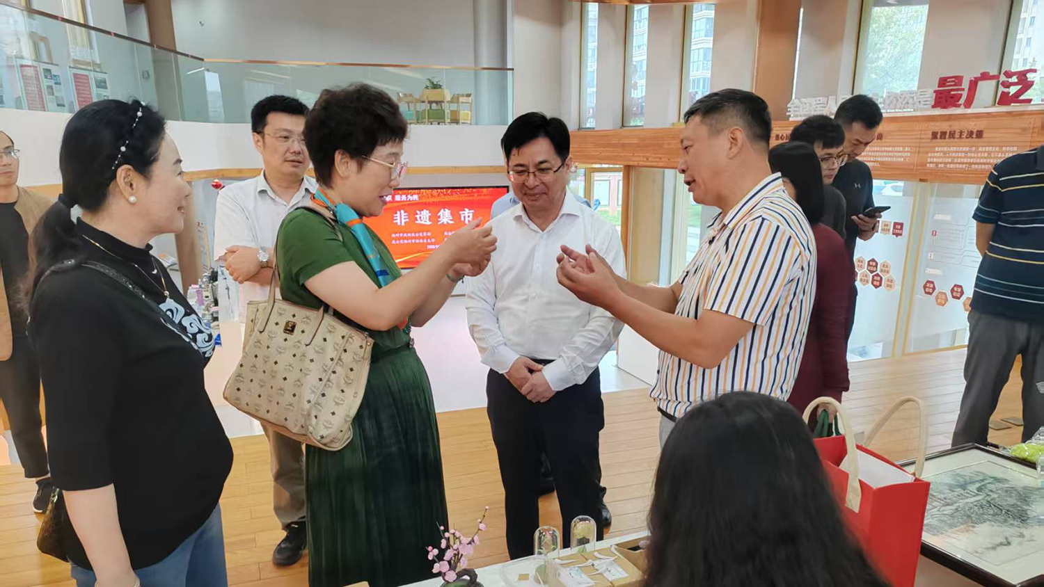 在非遗集市,徐晟与邗源社区群众一起,欣赏剪纸、通草花、木板画等非遗传承人的精美作品,听取非遗项目历史和技艺介绍,并参与非遗体验活动。在社区报告厅,社区群众济济一堂,致公党员讲师带来题为“军队文职——与时代同行的职业选择”公益讲座,向社区待业青年和基层群众普及军队文职现状、相关政策和招考要求,为社区青年人生规划和职业选择提供有益参考。