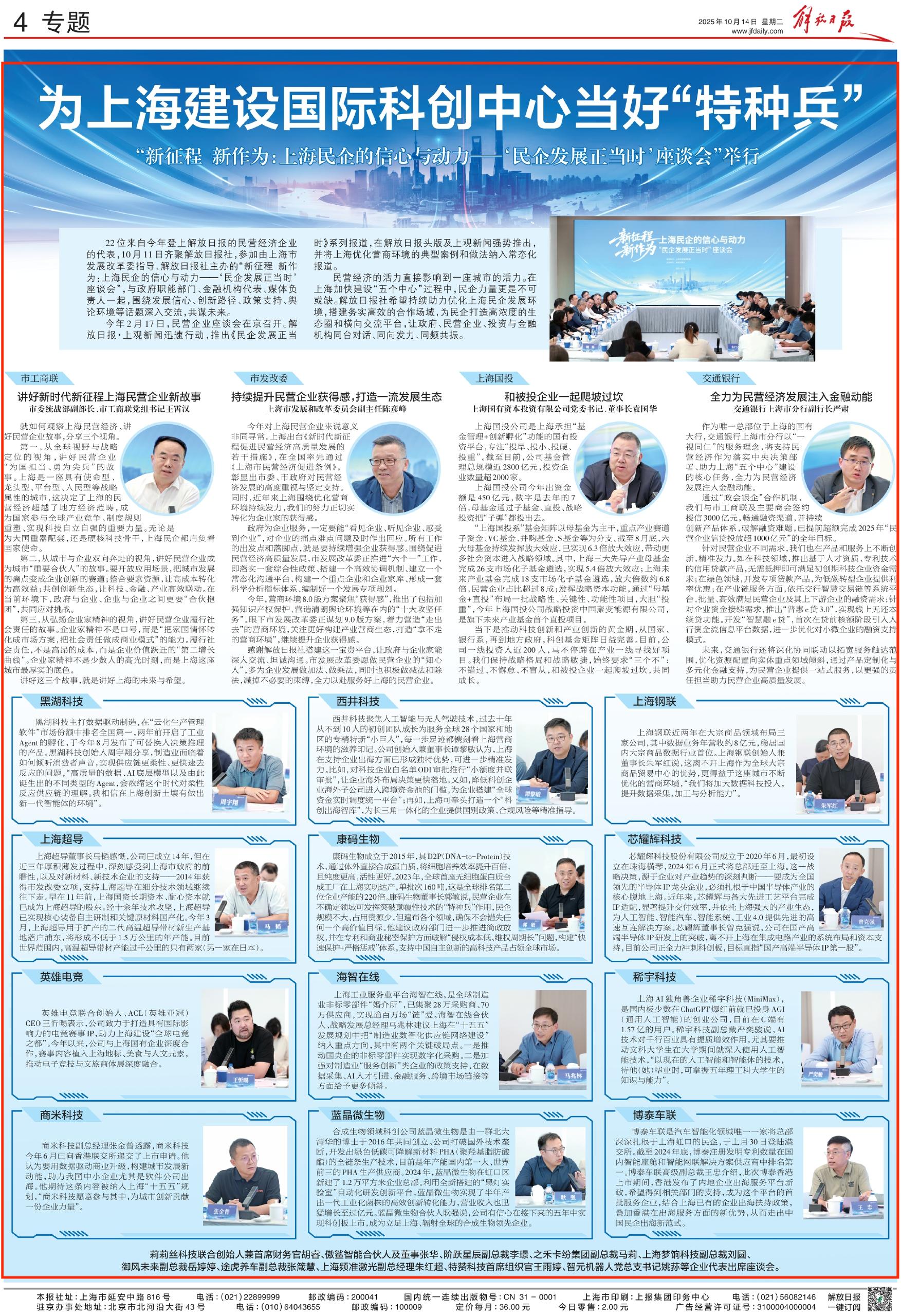 民营经济的活力直接影响到一座城市的活力。在上海加快建设“五个中心”过程中,民企力量更是不可或缺。解放日报社希望持续助力优化上海民企发展环境,搭建务实高效的合作场域,为民企打造高浓度的生态圈和横向交流平台,让政府、民营企业、投资与金融机构同台对话、同向发力、同频共振。