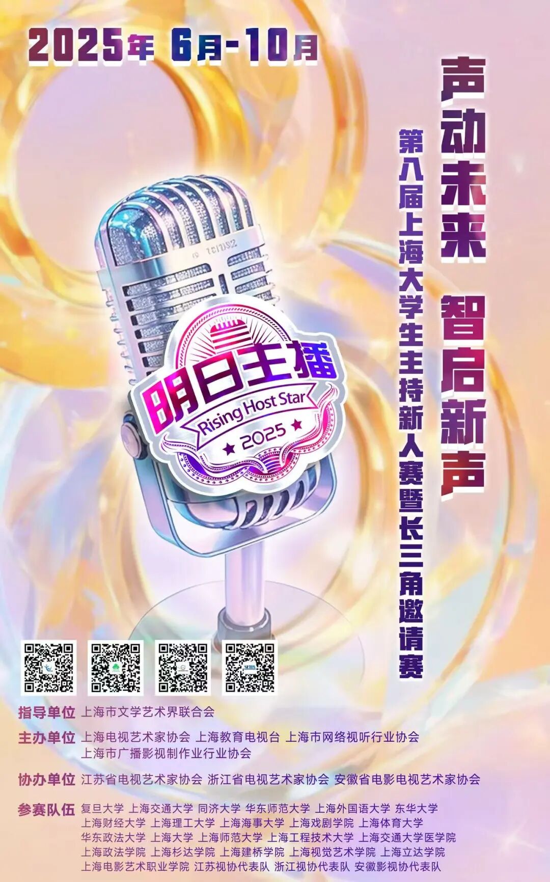 作为上海电视艺术家协会倾力打造的品牌赛事,“上海大学生主持新人赛”已连续成功举办八届,始终致力于发掘和培养高校主持新人,搭建专业展示与交流平台。本届首次以长三角联动形式举办,不仅提升了赛事的覆盖面和影响力,也为区域文化交流与人才共育注入了新的活力。