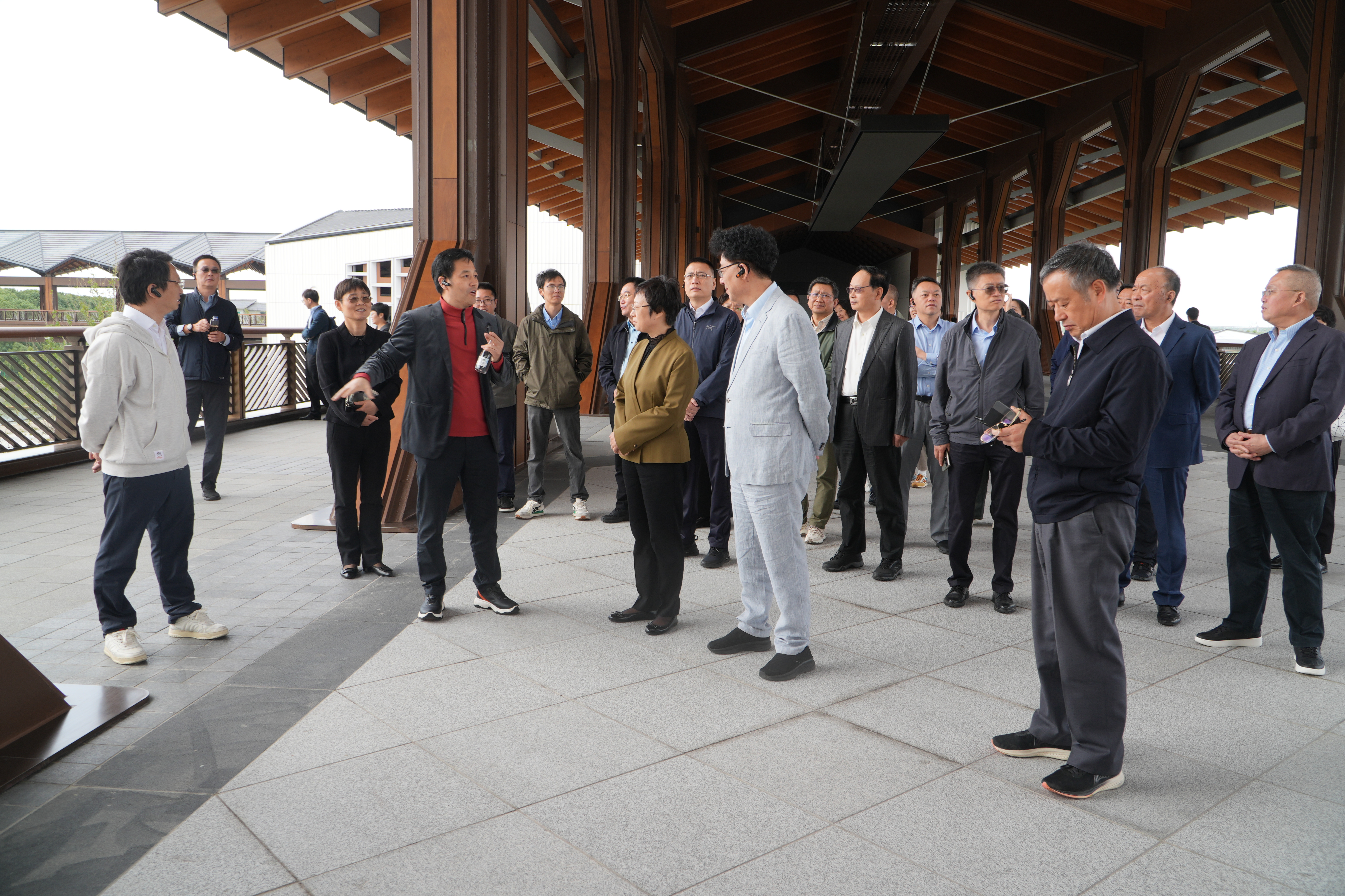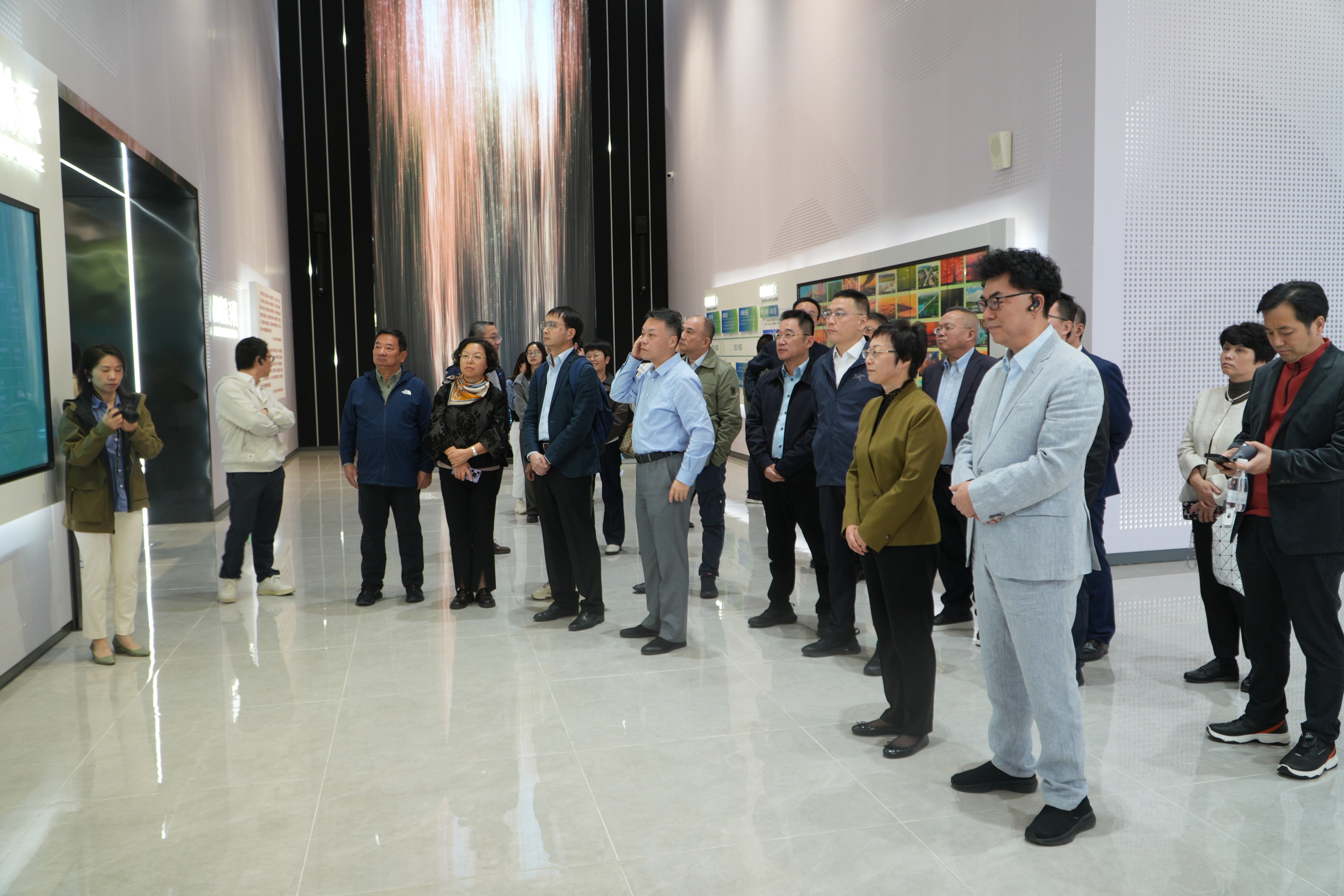 在长三角生态绿色一体化发展示范区规划展示馆,委员们通过立体沙盘模型、动态数字影像、互动多媒体等先进技术手段,深入考察示范区的空间布局、产业规划、生态保护等核心内容。委员们围绕生态绿色发展路径、跨区域协同治理机制、产业链协同创新模式等交流研讨,不时驻足考察感悟。委员们表示,从“一核三翼”空间结构的科学布局,到“生态优先、绿色发展”理念的扎实落地;从基础设施的互联互通,到公共服务的协同共享,详细的规划图景与建设成果让大家充分了解了示范区在深化区域合作方面的探索实践,深刻认识到示范区建设的重要意义。