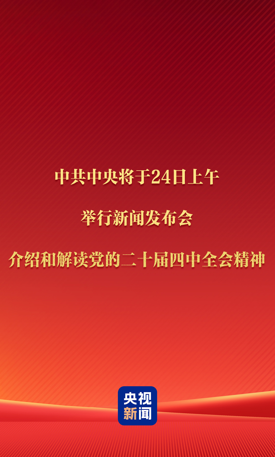 中共中央将于24日上午举行新闻发布会,介绍和解读党的二十届四中全会精神