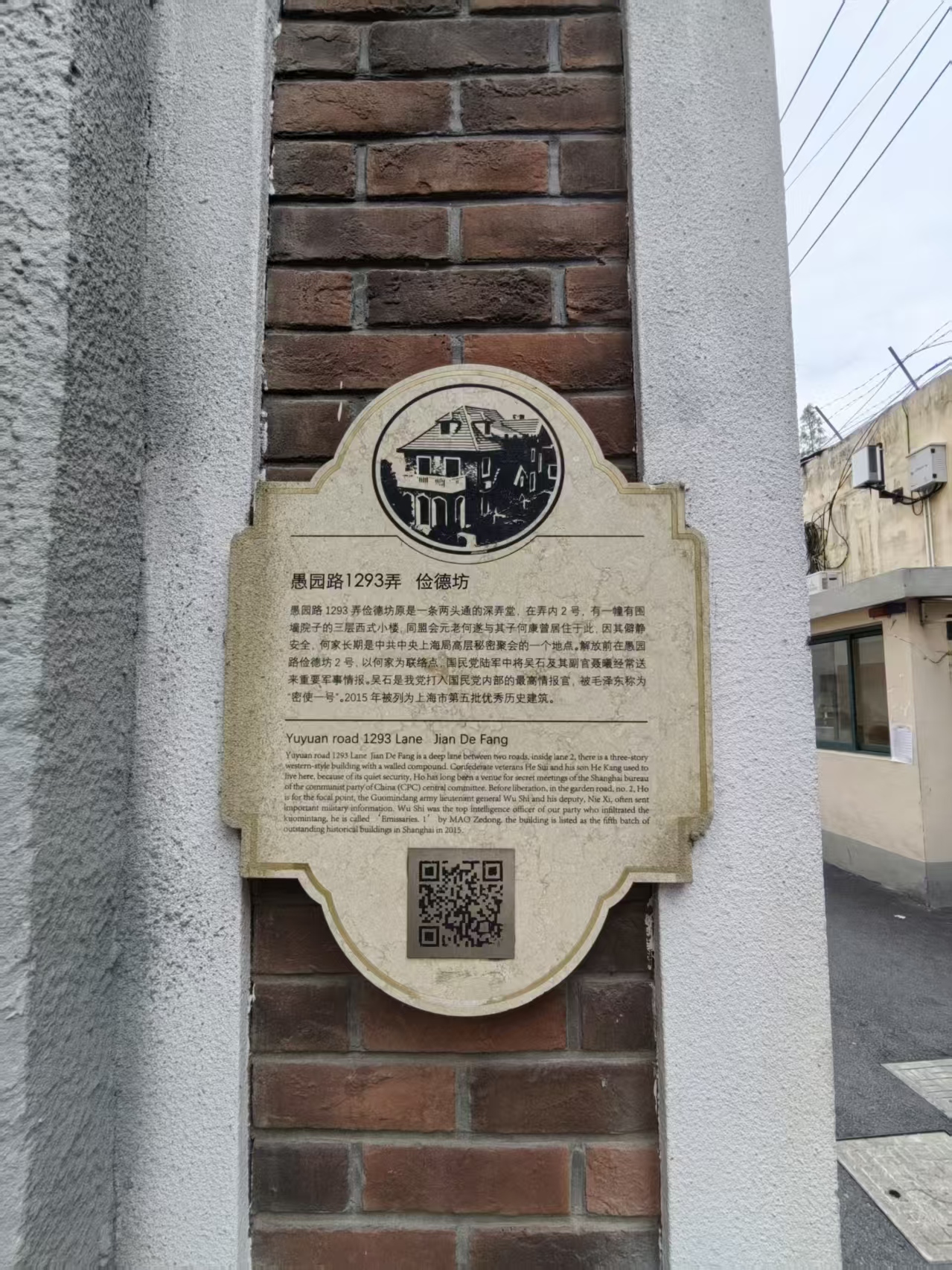 愚园路1293弄俭德坊原是一条两头通的深弄堂,在弄内2号,有一幢有围墙院子的三层西式小楼,同盟会员何遂与其子何康曾居住于此,因其僻静安全,何家长期是中共中央上海局高层秘密聚会的一个地点。解放前在愚园路俭德坊2号,以何家为联络点,国民党陆军中将吴石及其副官聂曦经常送来重要军事情报。吴石是我党打入国民党内部的最高情报官,被称为“密使一号”。