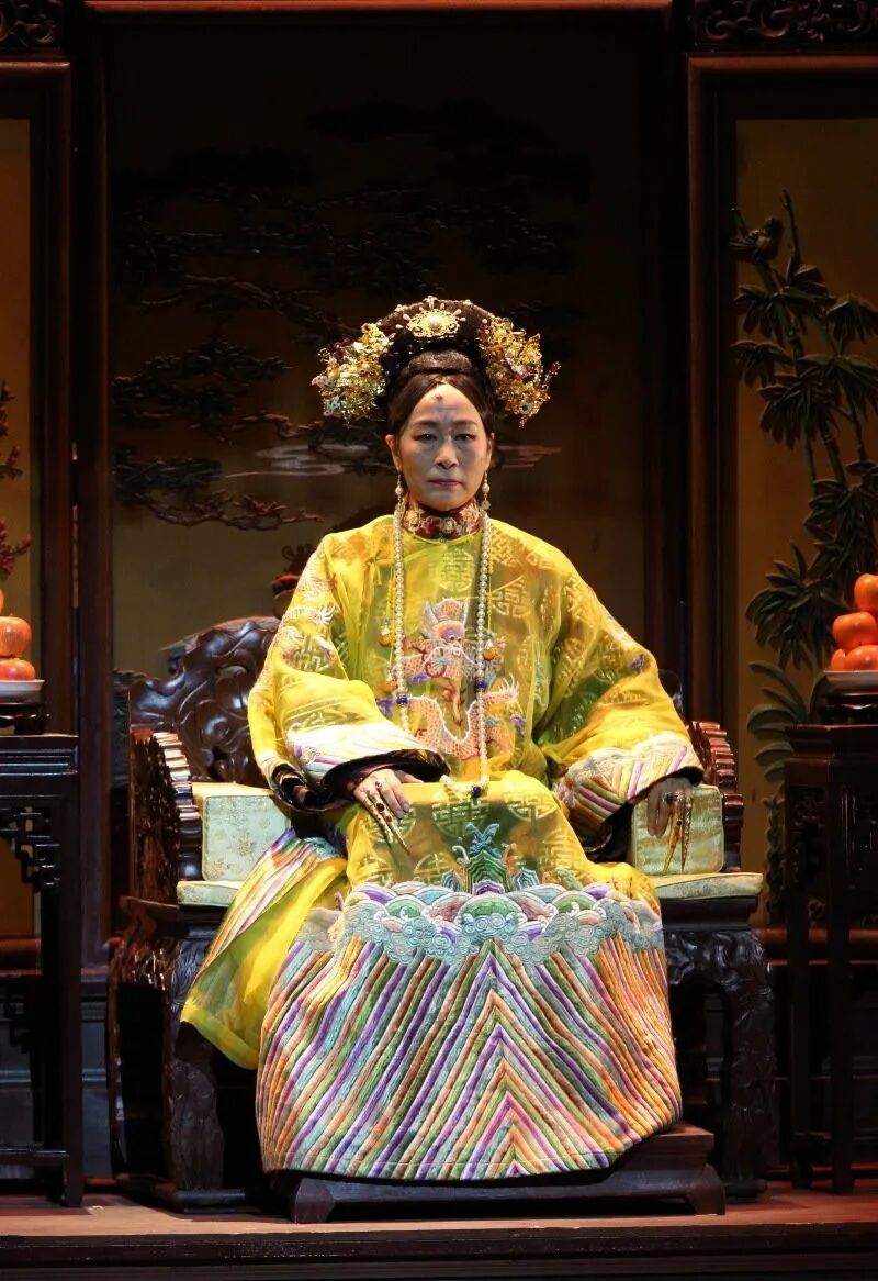此时的舞台上,编剧导演终于让朝廷最高权力者金口开启,一锤定音。作为慈禧这个特殊人物的扮演者,我在这场戏的演员自我内心里,或者说角色坐而不论的沉默中,给慈禧太后这个角色找到了一种内心强大且无声胜有声的戏剧节奏,我暂且把这样的节奏,视为人物的“精神节奏”。因为,虽然在舞台上长时间无声不语,但这个人物的内核精神,始终是不同寻常地屹立着的。这样的角色身上,一定会有某种称得上“精神节奏”的东西。它在戏剧中,只属于某一类特定人物。