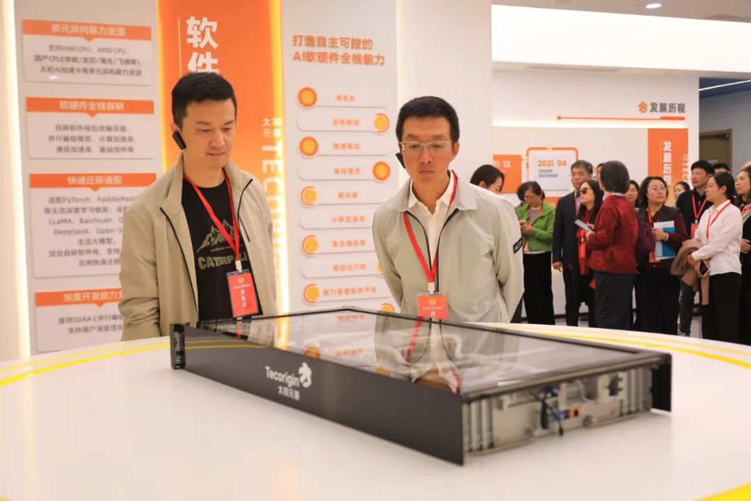在上海太初元衡智能科技有限公司,委员们听取了企业相关负责人就公司在高性能AI计算芯片领域的核心技术突破、自主研发能力及产业化应用成效等方面的情况介绍,对公司对标国际先进水平、深耕科技自立自强给予肯定,并就芯片架构设计、算力性能、适配场景及市场竞争优势等进行了深入交流。