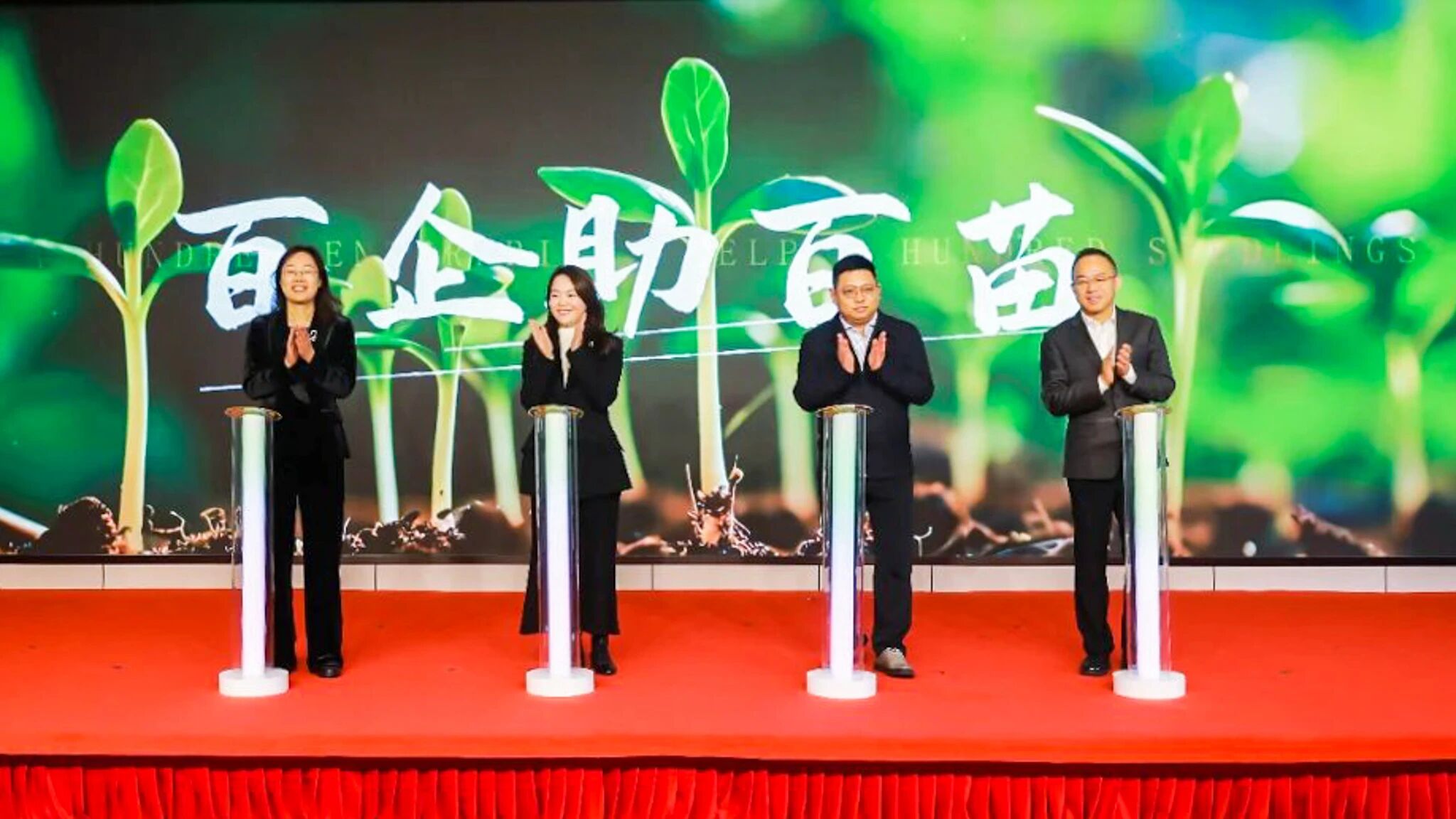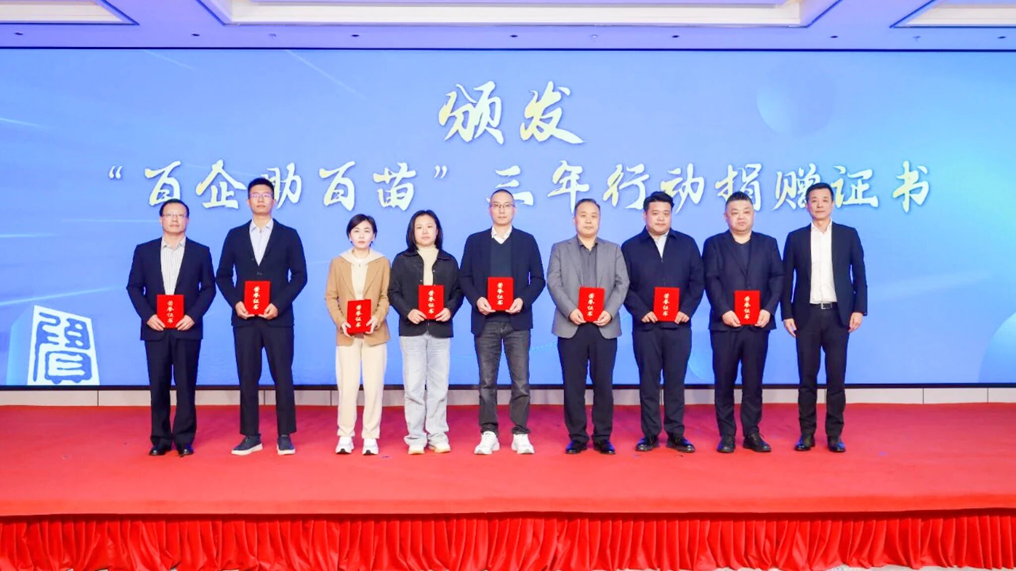 奉贤区“企航向未来 百企助百苗”行动由区工商联、区关工委于2022年联合发起,首轮已连续3年组织百家民营企业与百名优秀困境青少年开展“一对一”结对帮扶,累计捐赠助学资金近百万元。会上,为“百企助百苗”三年行动中的爱心企业家代表颁发捐赠证书。四团镇商会会长庄展贤、青溪商会会长蔡丹红、海湾镇商会会长陈琪、温州商会会长陈智共同启动第二轮“百企助百苗”行动。
