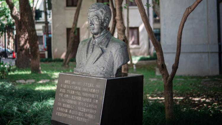 在陕西南路上众多的历史建筑交相辉映,与道路两旁高大的梧桐树共同营造出浓郁的文化氛围。隐藏在陕西南路繁华市井间的黄浦区明复图书馆,是我国第一座采用新式设计的专业图书馆,也是我国第一座公共科技图书馆。明复图书馆建成于1931年,是一幢西式三层老洋楼,建筑外观呈现西方现代派风格,以白色抹灰为主,门框上装饰有传统“荷叶托书”纹样,寓意“出淤泥而不染”,将中西文化巧妙融合。楼内保存着近百年历史的钢窗门、固定式全钢书架和专用升降机等老物件,从一楼图书借阅室和二楼综合阅览室可进入后方书库,这些历经九十多年岁月的设施经修复后仍在继续使用。这幢白色三层建筑,不仅承载着我国现代科学进步的重要记忆,而且以“小而美”的姿态成为上海的文化地标。明复图书馆的名字源自于“中国科学社”的主要创始人胡明复。胡明复(1891年—1927年),原名胡孔孙,后改名胡达,字明复,江苏无锡人。他是美国哈佛大学毕业的第一位中国博士,也是我国数学界第一位博士,参与创建“中国科学社”以及我国首份综合性科学期刊《科学》。胡明复出身书香世家,早年就读于上海南洋公学附属小学及中学,深受校长张元济赏识。1910年胡明复考取第二批庚子赔款留美资格,赴美国康乃尔大学求学,同行者有胡适、杨杏佛、竺可桢、赵元任等人。1914年胡明复获美国康乃尔大学文理学士学位,参与筹建“中国科学社”,起草《中国科学社总章》。同年,胡明复考入美国哈佛大学专攻数学,1917年获美国哈佛大学博士学位,毕业论文《具有边界条件的线性积分—微分方程》发表于《美国数学会会刊》。胡明复学成归国后担任上海大同大学教授并主持校务,兼任东南大学、南洋大学教职。1921年起在上海南洋大学(今上海交通大学前身)教授解析几何和微积分,并在《科学》杂志发表《科学方法论》、《科学之进步与社会之关系》等文章,系统阐述科学研究方法。1927年胡明复不幸溺水身亡,年仅36岁。为纪念胡明复的贡献,蔡元培提议将中国科学社新建的图书馆命名为“明复图书馆”,如今在黄浦区明复图书馆的庭院里还矗立着胡明复的半身铜像。