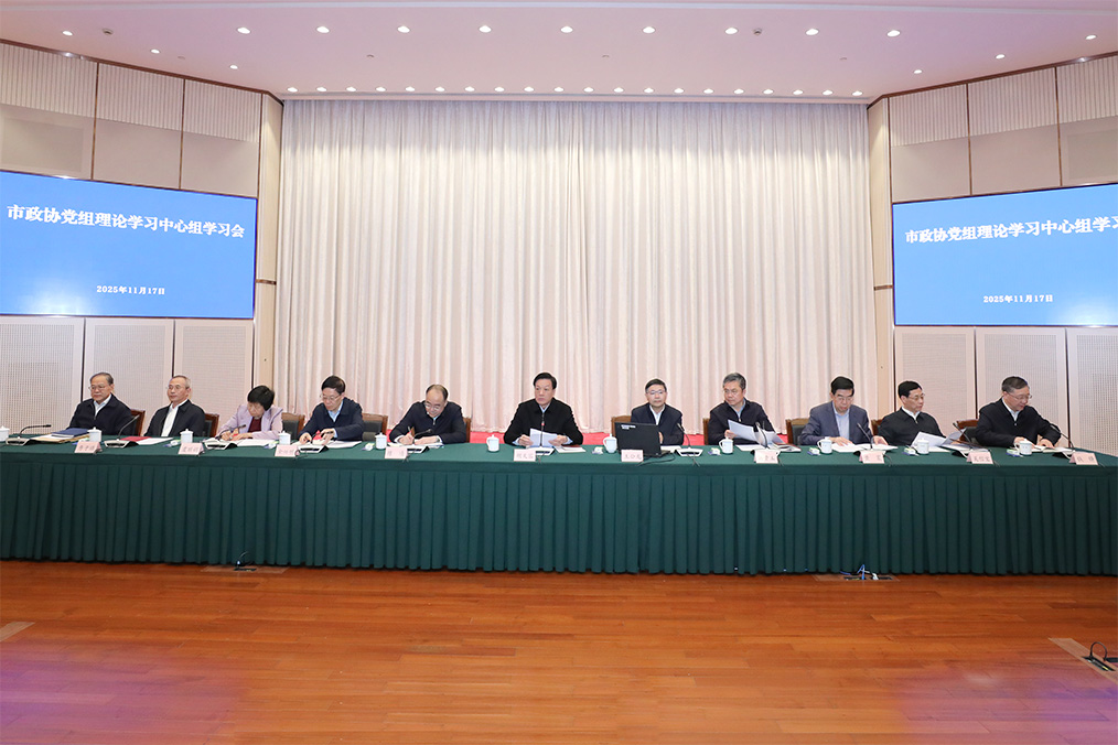 11月17日,市政协党组理论学习中心组召开学习会,集体学习《习近平谈治国理政》第五卷。市政协主席、党组书记胡文容主持并讲话,强调要把《习近平谈治国理政》第五卷作为思想源、案头卷、必修课,切实做到学思用贯通、知信行统一,把学习成果转化为推动政协工作高质量发展的实际成效,更好助推上海“十五五”开好局、起好步,在推进中国式现代化中充分发挥龙头带动和示范引领作用。