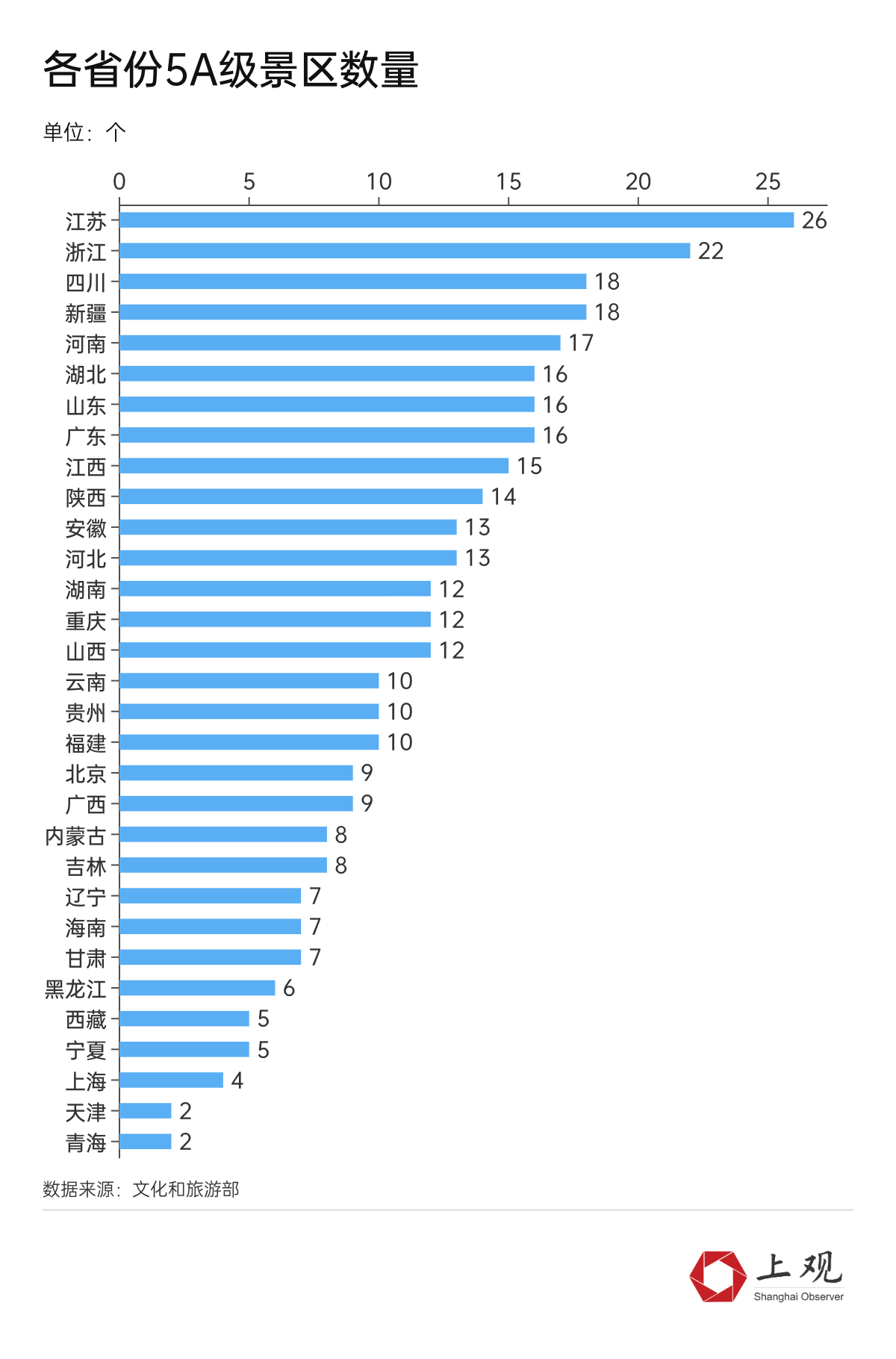 另外,由于当前春秋假多以本地游为主的特点,当地旅游资源是否丰富也成了一个考量因素。从5A级景区数量来看,四川、浙江都名列前茅。
