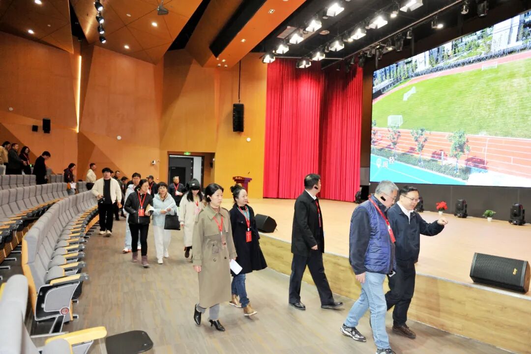 随后,委员们又走进华东师范大学第二附属中学宝山校区,察看标准化实验室、温水游泳池、音乐厅等教学设施配备和校园环境建设情况,听取教育教学管理、师资队伍建设等方面的情况介绍,对华二落户杨行所带来的的丰富教育资源及对区域整体教育生态的扩优提质表示充分认可。