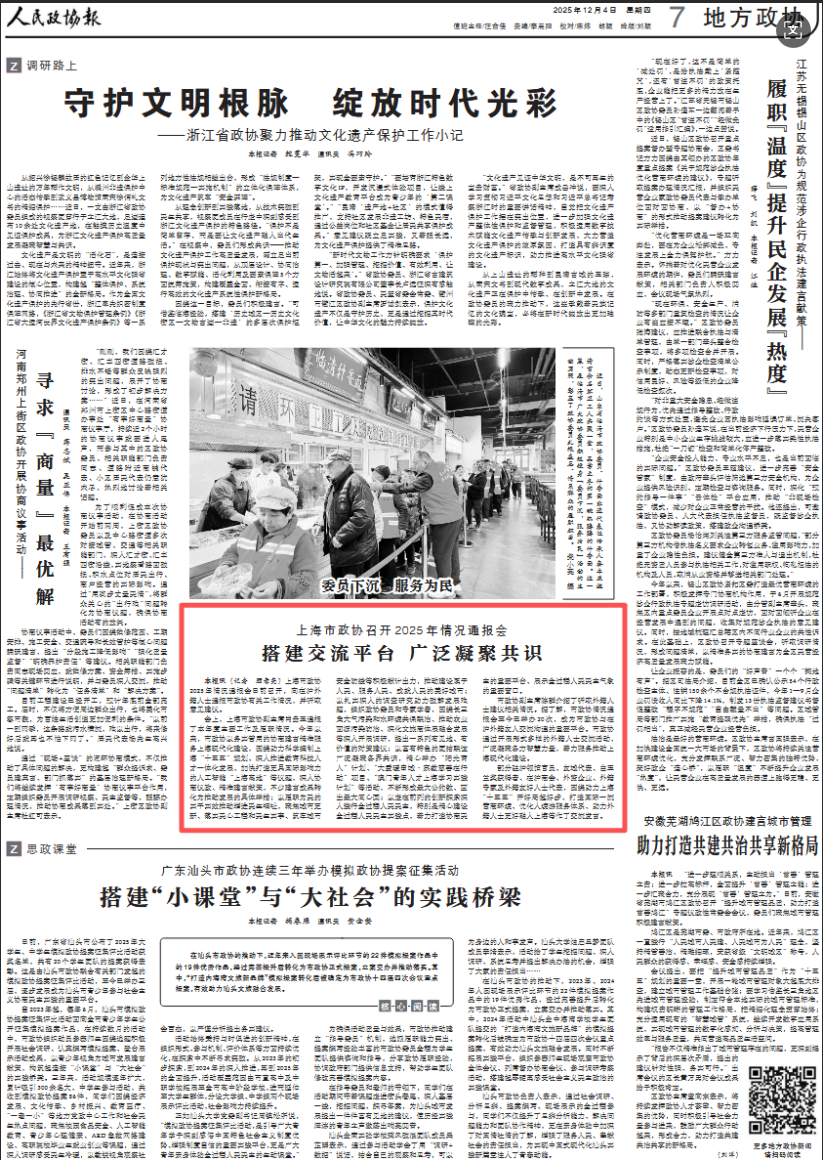 人民政协报关注|上海市政协召开2025年情况通报会:搭建交流平台,广泛凝聚共识