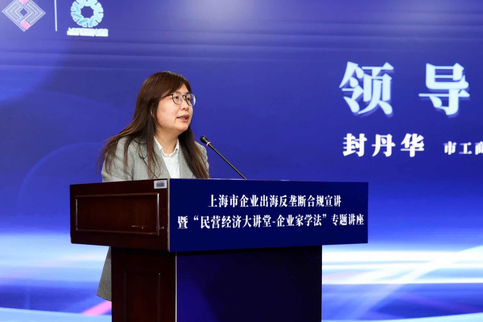 封丹华指出,本次企业出海反垄断合规宣讲暨“民营经济大讲堂-企业家学法”专题讲座,既是品牌建设的延续,更是服务企业国际化发展的务实举措。她表示,一要强化合规意识,筑牢法治民企根基。希望广大民营企业将合规意识内化于心、外化于行,把合规能力转变为战略优势。二要加强内部治理,推动建设一流企业。希望广大民营企业加快构建权责清晰、运转协调、有效制衡的现代治理体系。三要汇聚多方力量,赋能民企高质量发展。市工商联将持续发挥桥梁纽带作用,搭建更多精准高效的法律服务平台,希望各商协会加强行业自律规范,及时反映企业诉求,推动形成政府引导、行业协同、企业主体的合规生态。