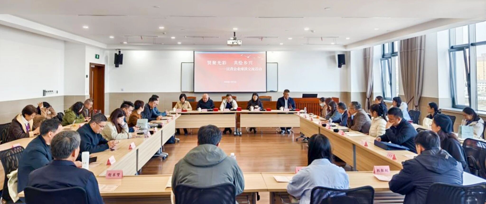 培训期间,市、区两级工商联共同举办民营企业座谈交流活动,余仲威主持座谈。奉贤区农业农村委、青村镇有关负责同志详细介绍了本地农业发展、乡村建设的阶段性成果,并结合吴房村、李窑村等典型案例,分享了基层推进产业融合、乡村运营的实践路径。