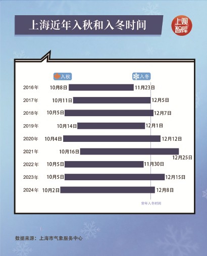 但从这几年的数据看,“晚冬”已成上海常态。近10年中,上海有6年入冬时间偏晚,2021年更是创下12月25日入冬的最晚纪录。