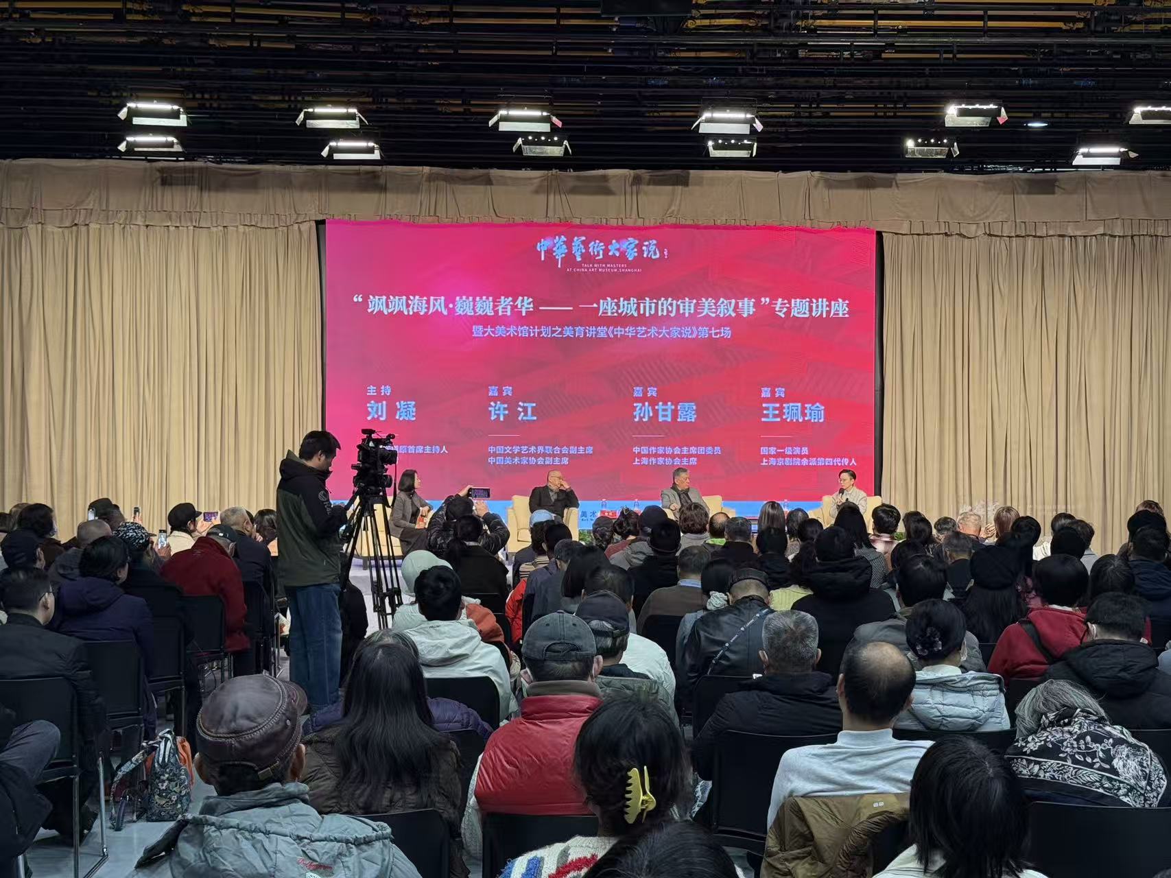 12月21日,上海美术馆重磅品牌美育项目“中华艺术大家说”第七讲如约而至,由上海美术馆与中国银行上海市分行共同主办,本期以“飒飒海风 巍巍者华——一座城市的审美叙事”为题,特邀三位分属不同艺术领域的翘楚——当代著名油画家许江、著名作家孙甘露、著名京剧演员王珮瑜,展开一场关于城市精神与美学建构的深度对话。