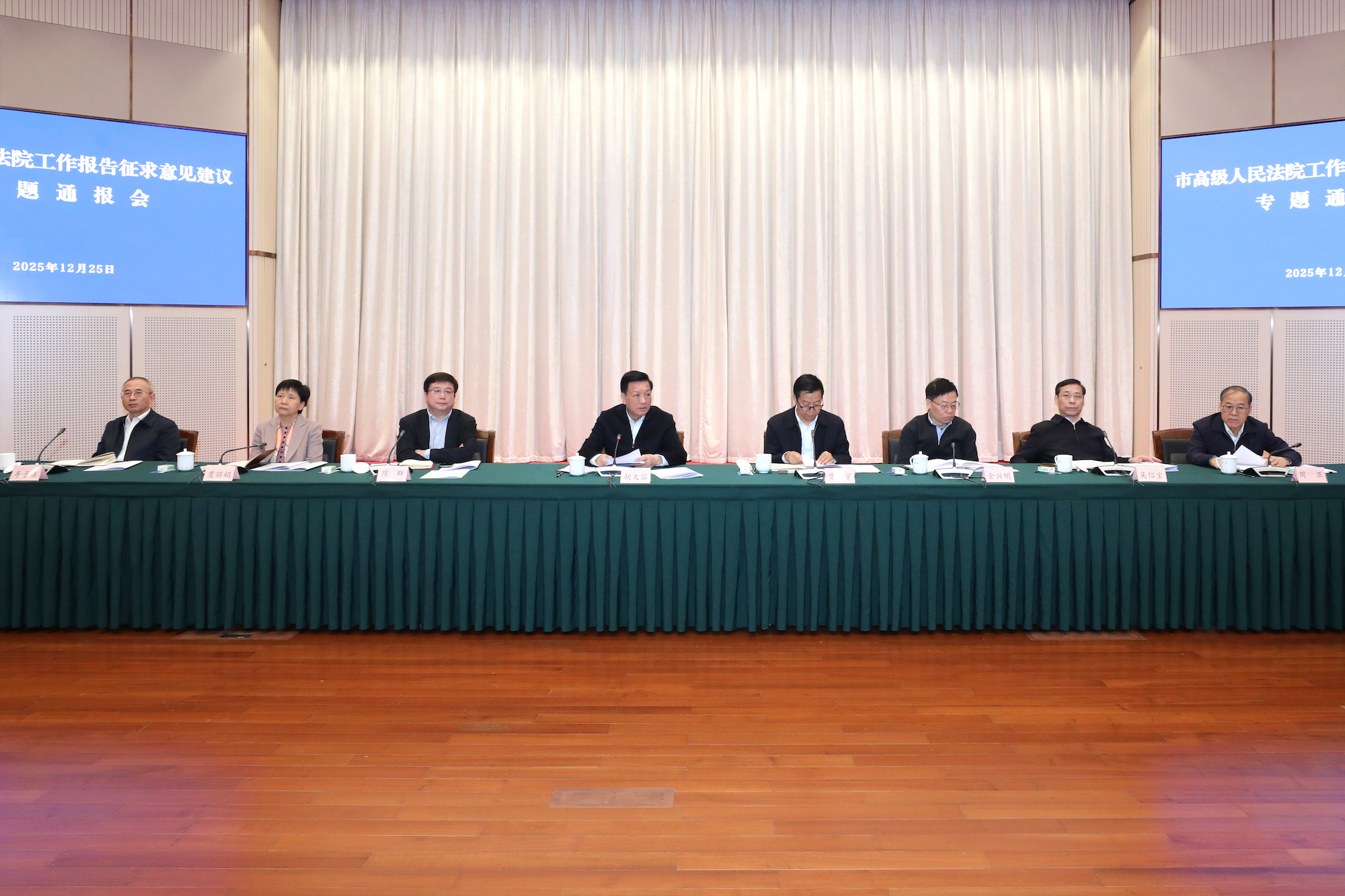 会上,市高级人民法院院长贾宇通报了市高级人民法院工作报告起草情况及主要内容,听取并回应委员建言。委员们认为,今年以来,全市法院系统以习近平法治思想为引领,按照“四个表率”要求,紧扣“政治建设引领、司法质效为本、数字改革赋能”工作主线,奋力推进审判工作现代化,为上海经济社会高质量发展提供了有力司法保障。吕红兵、程金华、徐豪、俞卫锋等全国政协委员、市政协委员围绕加快优化科技创新法治环境、切实维护民营企业合法权益、以数字技术提升审判执行质效、强化青少年法治宣传教育、完善特殊群体权益保障等提出建议。胡文容强调,要全面学习贯彻党的二十届四中全会和十二届市委八次全会精神,进一步强化政治担当,把政治要求细化为办案要领,坚持运用法治思维和法治方式化解矛盾、维护稳定、促进发展,实现政治效果、法律效果和社会效果的有机统一。要夯实制度基础,进一步落实和完善司法责任制,深化司法体制综合配套改革,重点聚焦“五个中心”建设、高水平制度型开放、人民城市建设等“十五五”重大任务,强化司法政策供给,积极发挥法治对上海改革发展稳定大局的引领、规范和保障作用。要厚植为民情怀,完善便民利民诉讼机制,更好解决人民群众反映的急难愁盼问题,强化司法调解和人民调解、行政调解、行业性专业性调解协调联动,以案件办理助推社会治理现代化。要抓实队伍建设,坚持用严的标准管党治院,严格执行防止干预司法“三个规定”,加快培育一批与上海“五个中心”建设需求相匹配的高素质审判人才,努力打造一支堪当重任的法院铁军。市政协要充分发挥专门协商机构作用,聚焦人民法院履职担当的工作重点,深入协商议政、广泛凝聚共识,助力上海法院工作走在前、作表率,为上海“十五五”发展开好局、起好步提供坚强的法治保障。