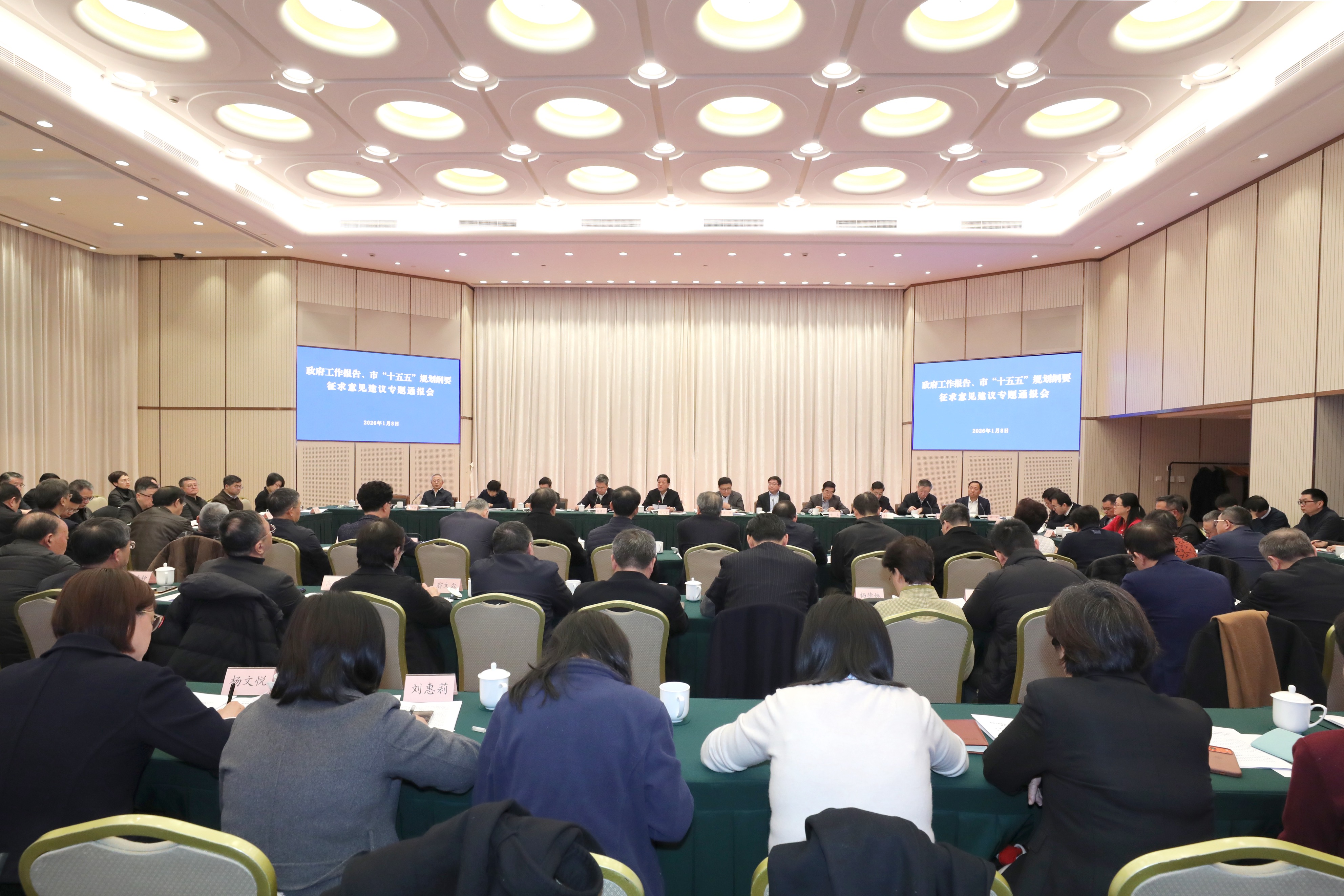 1月8日,市政协召开政府工作报告、本市“十五五”规划纲要征求意见建议专题通报会。市政协主席胡文容出席并讲话,市委常委、常务副市长吴伟介绍有关情况,听取并回应委员建言。