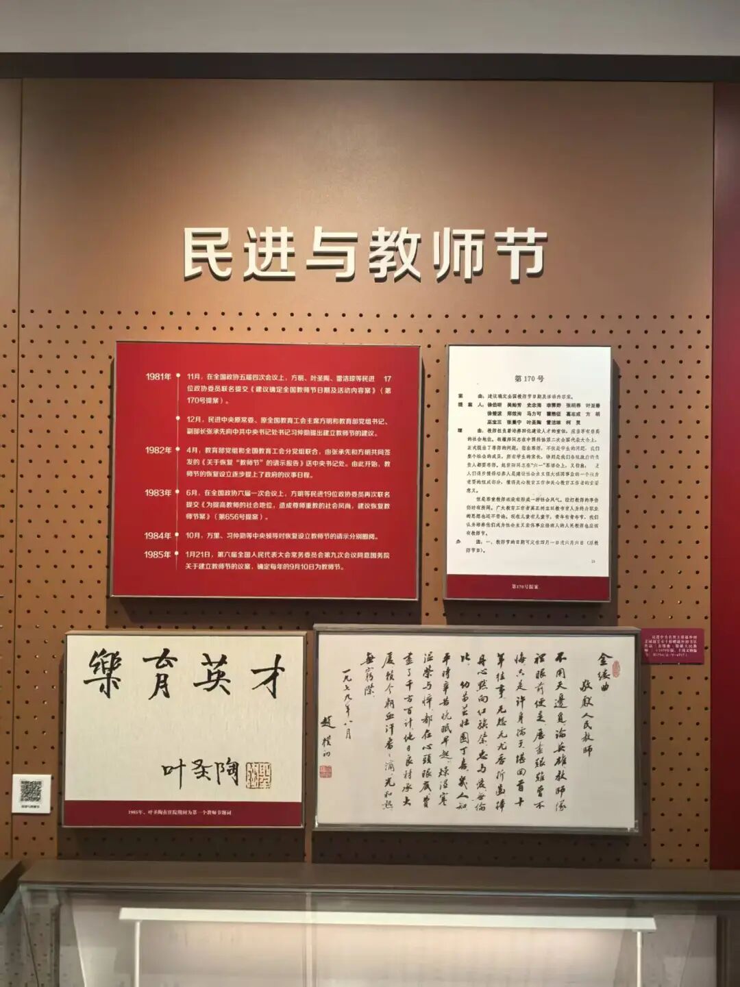 20世纪80年代初,民进在全国政协会议上率先提出设立教师节的建议,为推动教师节恢复作出历史性的贡献。此次入藏的《金缕曲·敬献人民教师》(1979年)珍贵手迹已在民进成立旧址纪念馆四号展厅“民进与教师节”主题展区正式陈列,面向各级组织与广大会员开放参观学习。