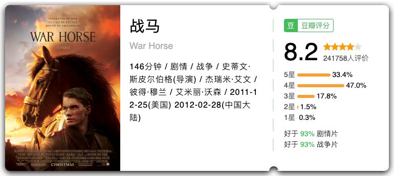 关键词: 一战史诗、生命坚韧、命运羁绊这部由斯皮尔伯格执导的战争史诗,以一匹名叫乔伊的战马为视角,串联起一战中不同阶层、不同国家的人物命运。从英国乡村的宁静田野,到战火纷飞的欧洲战场,乔伊经历了数次易主,却始终保持着对生命的热爱与对自由的渴望。影片中那匹在铁丝网中挣扎的白马,成为了战争残酷与生命顽强的永恒象征。