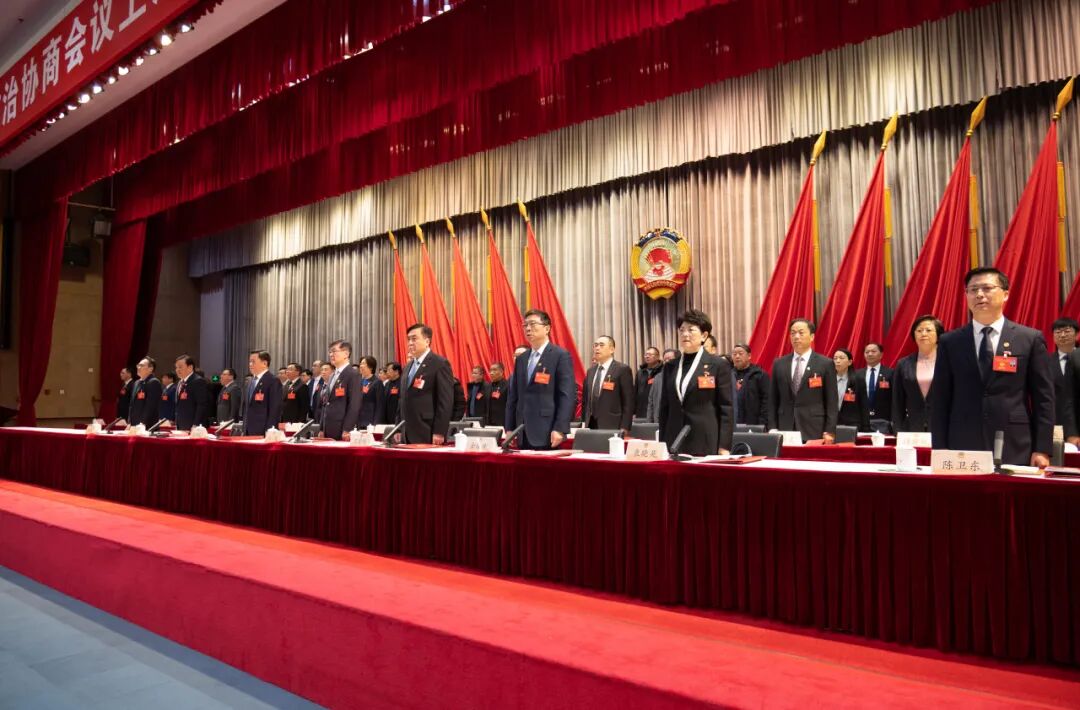 上午10时,张斌宣布大会开幕。全场起立,奏唱《中华人民共和国国歌》。