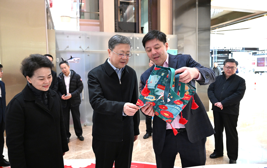 位于南京路上的新世界城户外广场一派“瑞雪迎新”景象,商城内各类体验项目和快闪活动分外热闹。市领导一路察看业态布局、主题场景、特色品牌,走进沉浸式演艺空间,同从业人员亲切交流,关切询问剧目孵化、品牌打造、人才培养等情况,叮嘱相关区和部门负责同志,要进一步提升政策支持的针对性有效性,搭建多元化的出人出戏平台,推动更多优秀文艺作品从小剧场走向大舞台,成为中外游客选择上海、“必游必看”的理由。调研期间,陈吉宁分别听取了春节期间全市文旅商体展联动工作安排和春节促消费、以旧换新及上海环球美食汇等特色主题活动开展情况汇报。陈吉宁指出,文旅商体展深度融合,是激发消费潜力、提升城市活力的一项重要举措。要不断研究新情况、把握新趋势、了解新变化,推动文旅商体展布局协同、资源整合、业态融合,更好实现商品消费扩容升级、服务消费优化供给、新型消费培育壮大。要在提升春节等大型节庆活动国际影响力上持续用力,把传承弘扬中华优秀传统文化同持续打响“上海消费”品牌更加紧密结合起来,着力孵化培育一批特色鲜明、引领潮流、闻名遐迩的原创大品牌,焕新做精老字号品牌,培育壮大新锐品牌,不断提升品牌价值。要在优化消费环境上持续用力,用心用情擦亮服务金字招牌,持续提升离境退税和跨境支付便利化水平,一年抓一年、年年有进步,推动国际消费中心城市建设不断取得新成效。