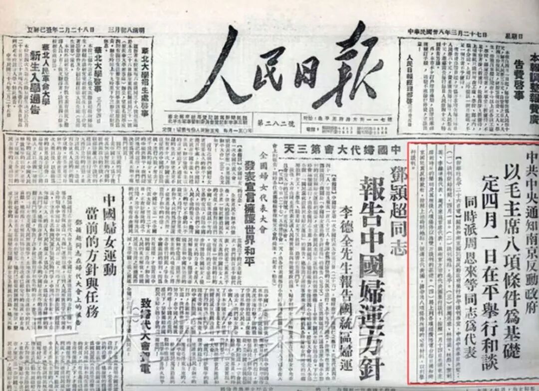 刘仲容一回到南京就赶到李宗仁官邸,介绍了在北平的大致情况后,又从随身包里摸出来一张报纸递给李宗仁:“情况就是这些,我还从北平带来了4月5日的《人民日报》,上面刊登了一篇社论《南京政府向何处去?》,表明了共产党的方针政策。”