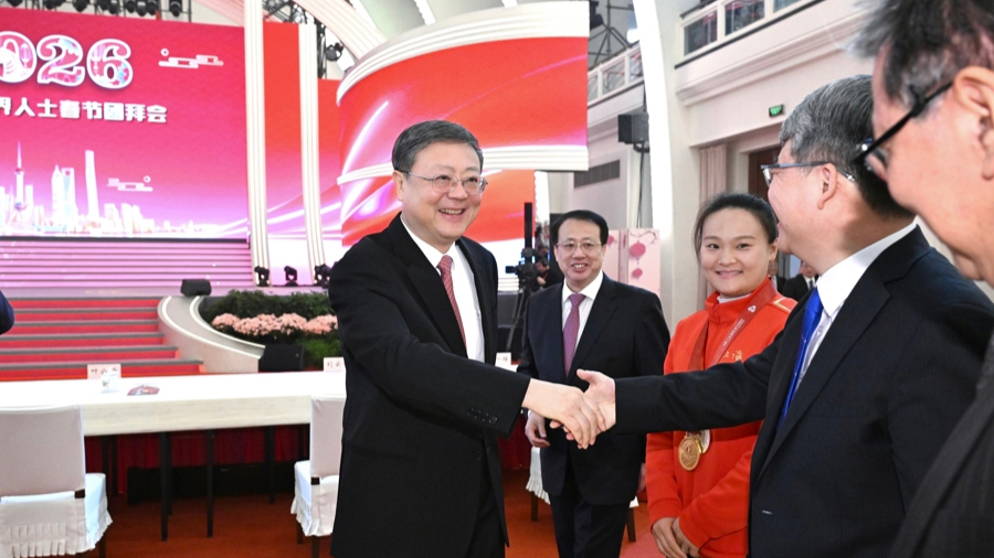 今天(2月13日)上午,上海市各界人士欢聚一堂,出席2026年春节团拜会。市领导陈吉宁、龚正、黄莉新、胡文容、朱忠明与各界嘉宾一起,共同祝愿伟大祖国繁荣昌盛,上海明天更加美好,全市人民马年吉祥、幸福安康。上海展览中心中央大厅气氛热烈喜庆,春节元素浓郁。各界人士互致问候,畅叙友谊,回顾“十四五”发展成就,共话“十五五”美好愿景。来自经济社会发展各领域的先进典型、基层一线代表在前区就座。